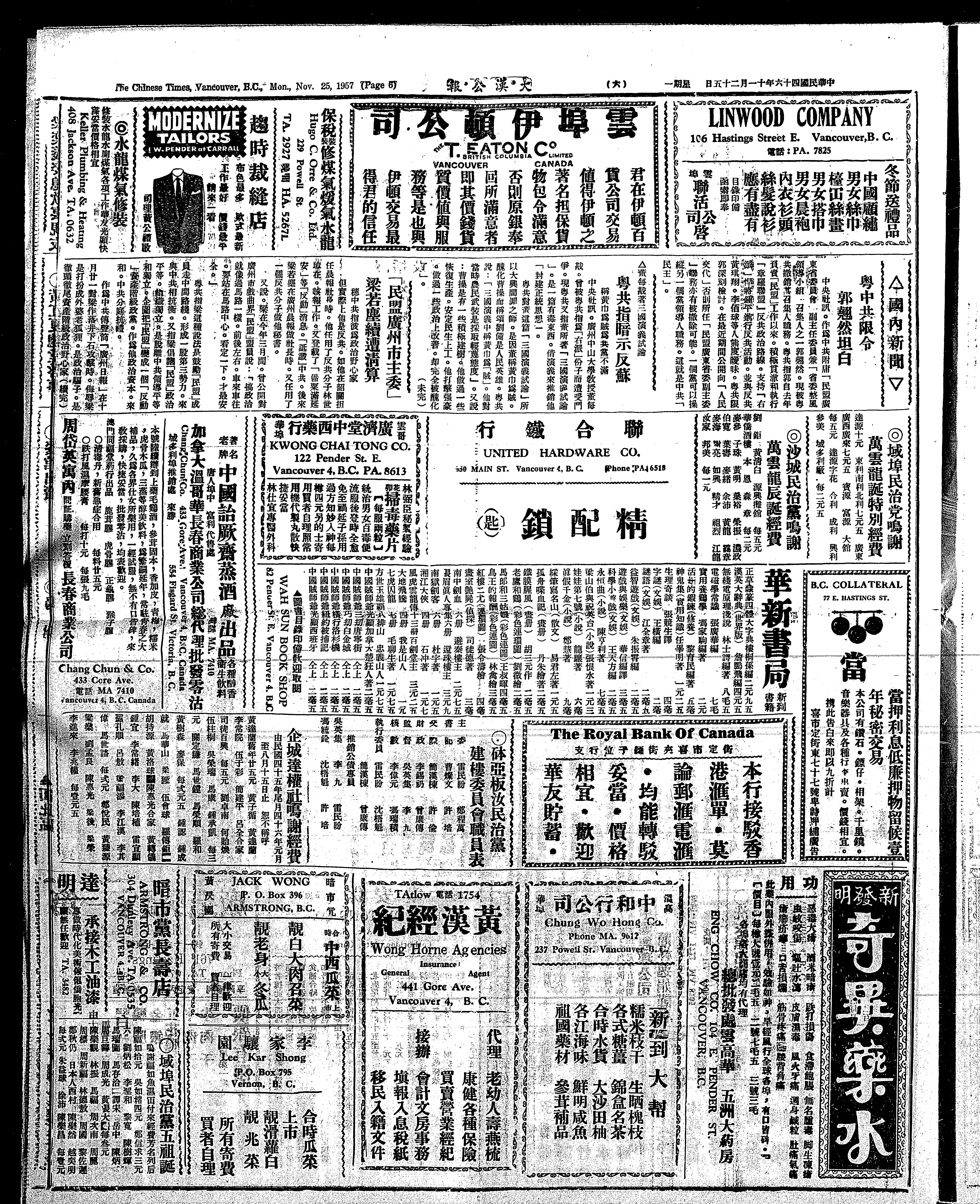 Vancouver, British Columbia : Tai Hon Kong Bo Ltd., 1957; 8 images avec recherche en texte intégral