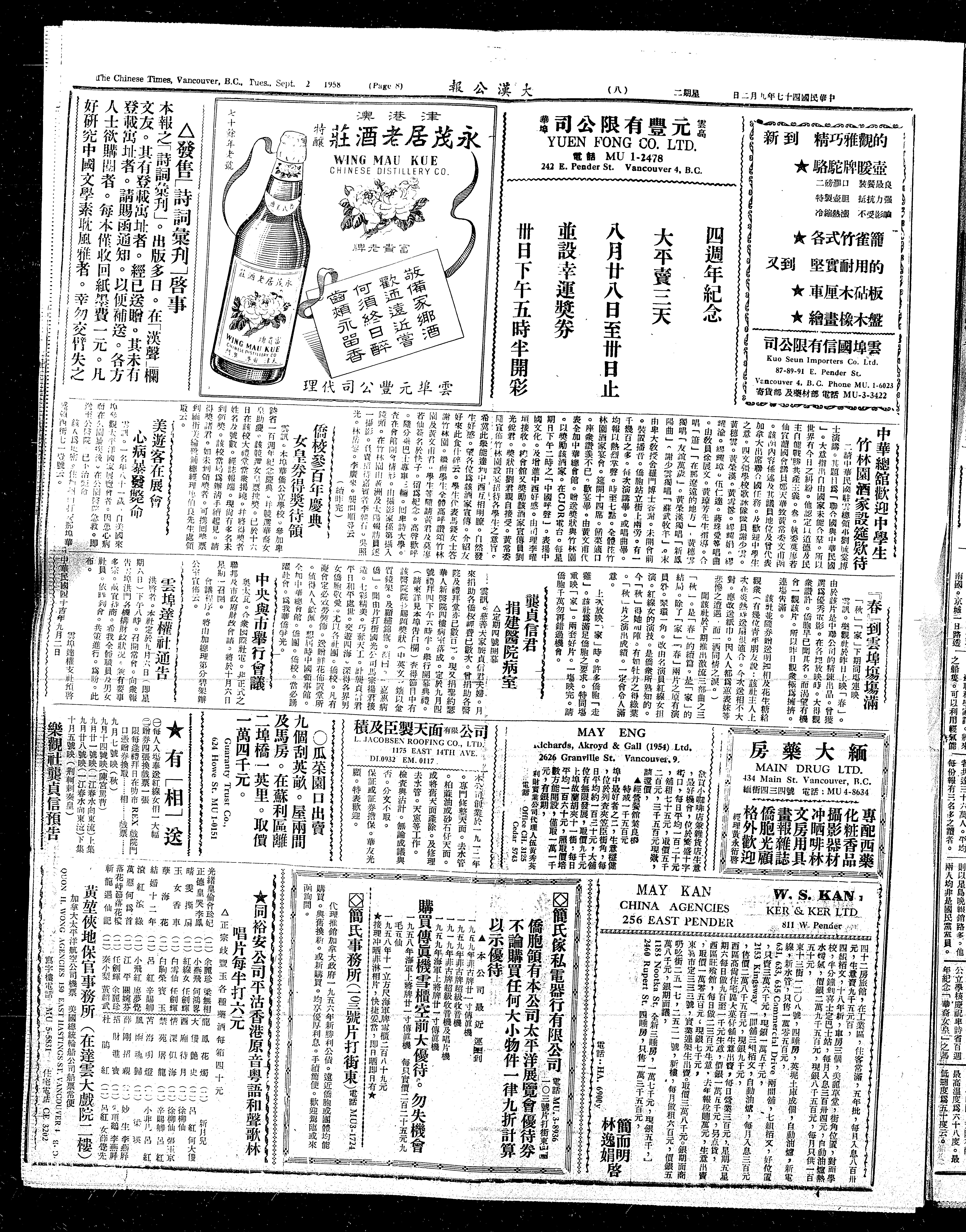 Vancouver, British Columbia : Tai Hon Kong Bo Ltd., 1958; 8 images avec recherche en texte intégral