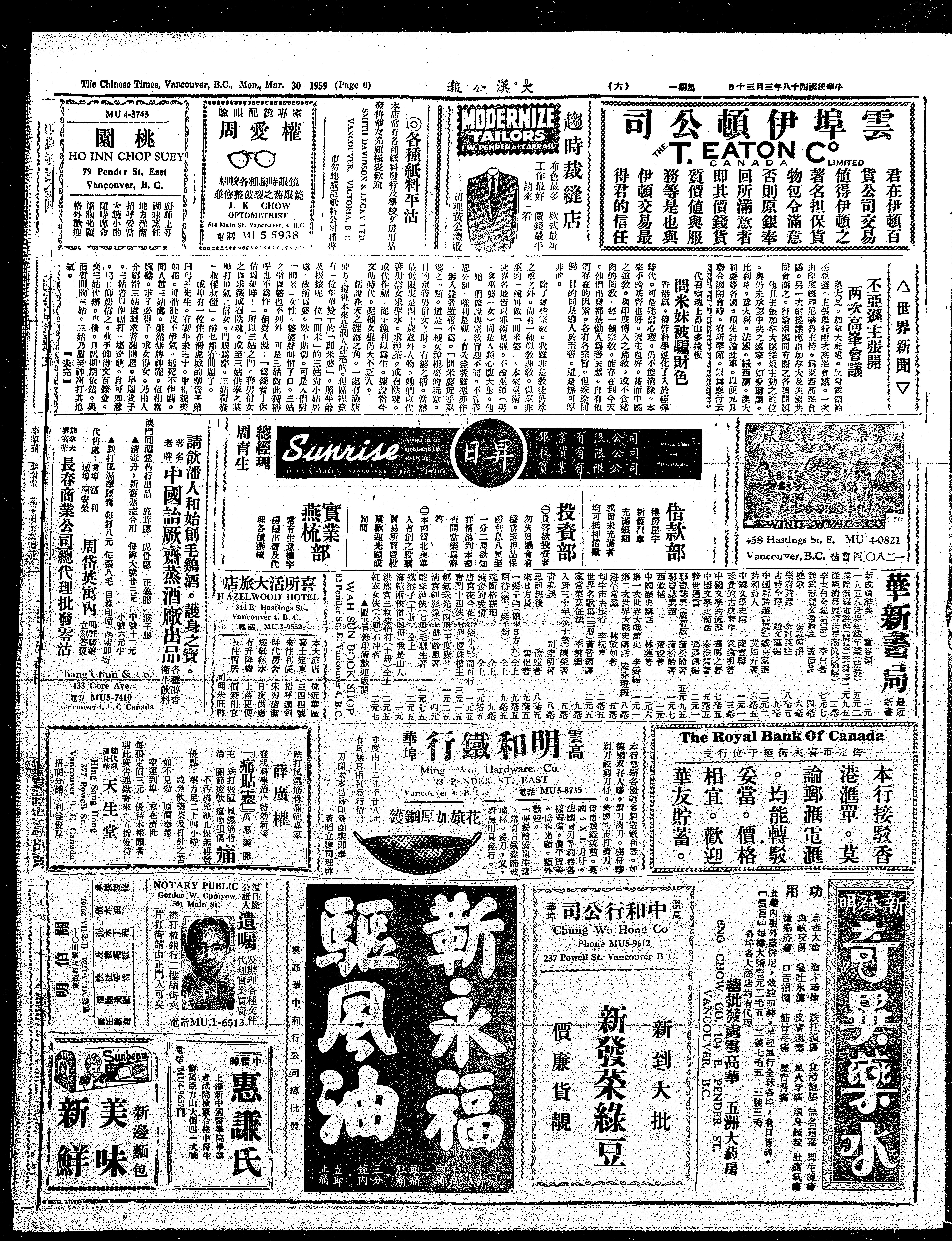 大漢公報 : Chinese Times : [1959-03-30]