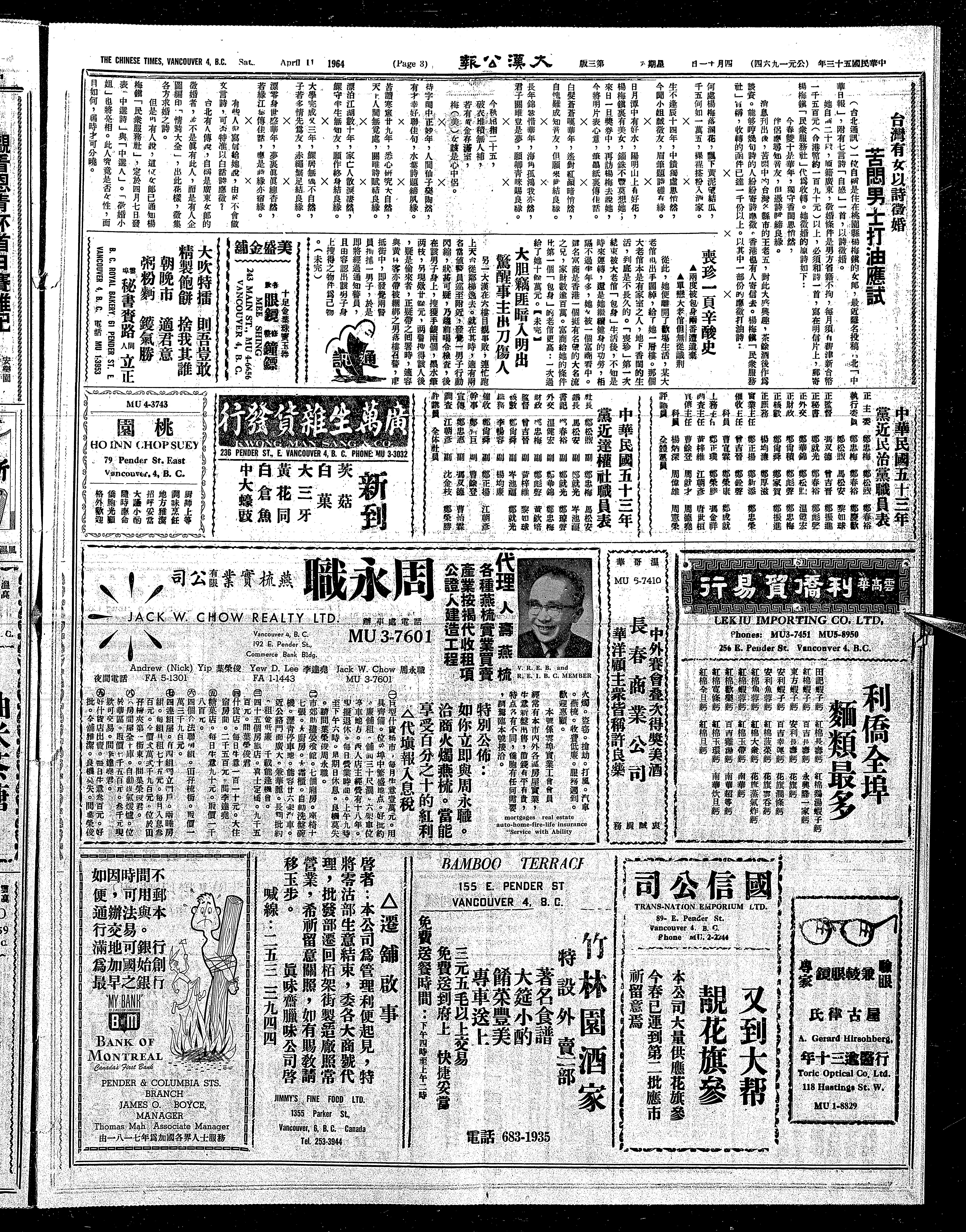 Vancouver, British Columbia : Tai Hon Kong Bo Ltd., 1964; 8 images with full-text search