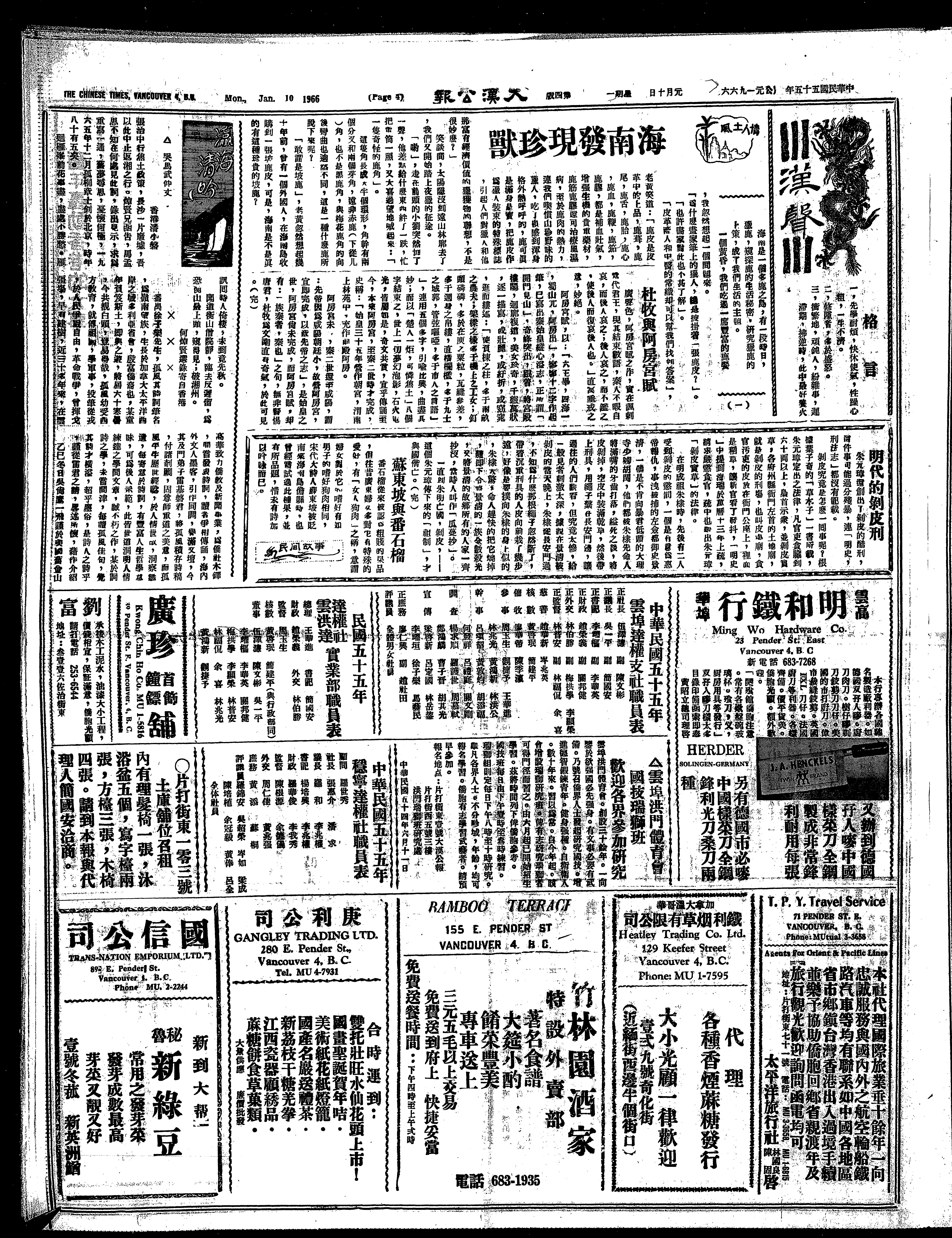 大漢公報 : Chinese Times : [1966-01-10]