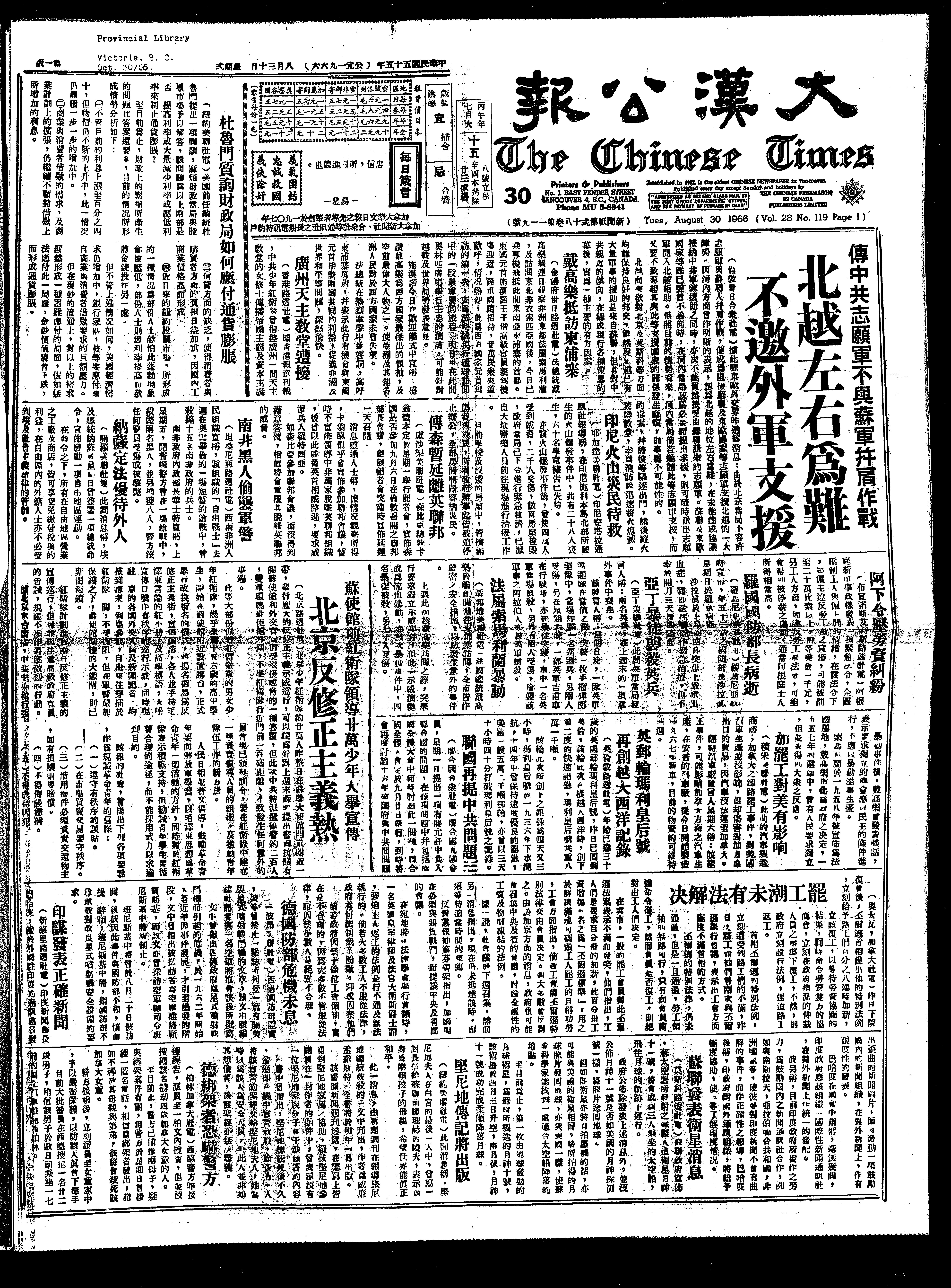 華裔加拿大人--不列顛哥倫比亞--溫哥華--歷史--報紙