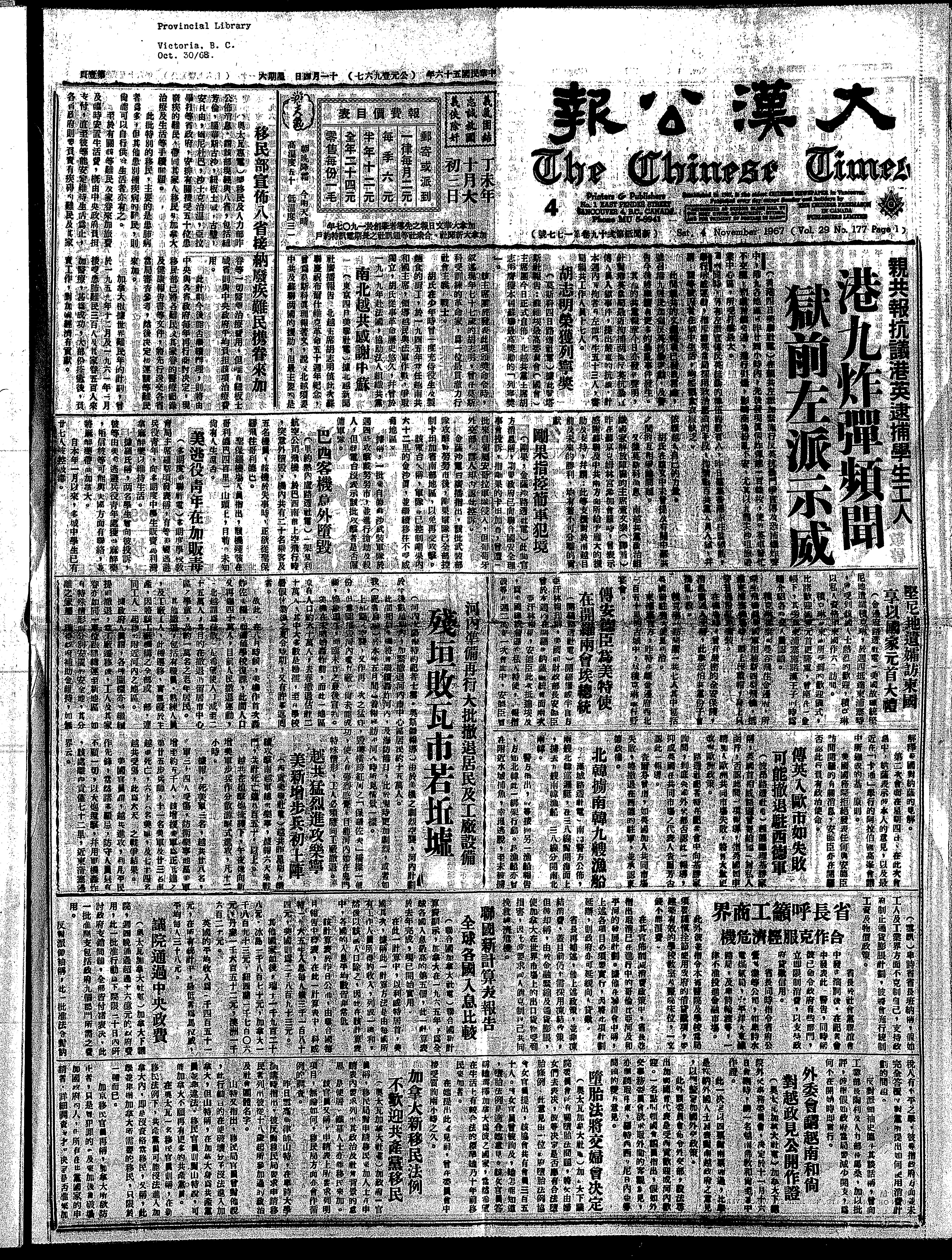 大漢公報 : Chinese Times : [1967-11-04]