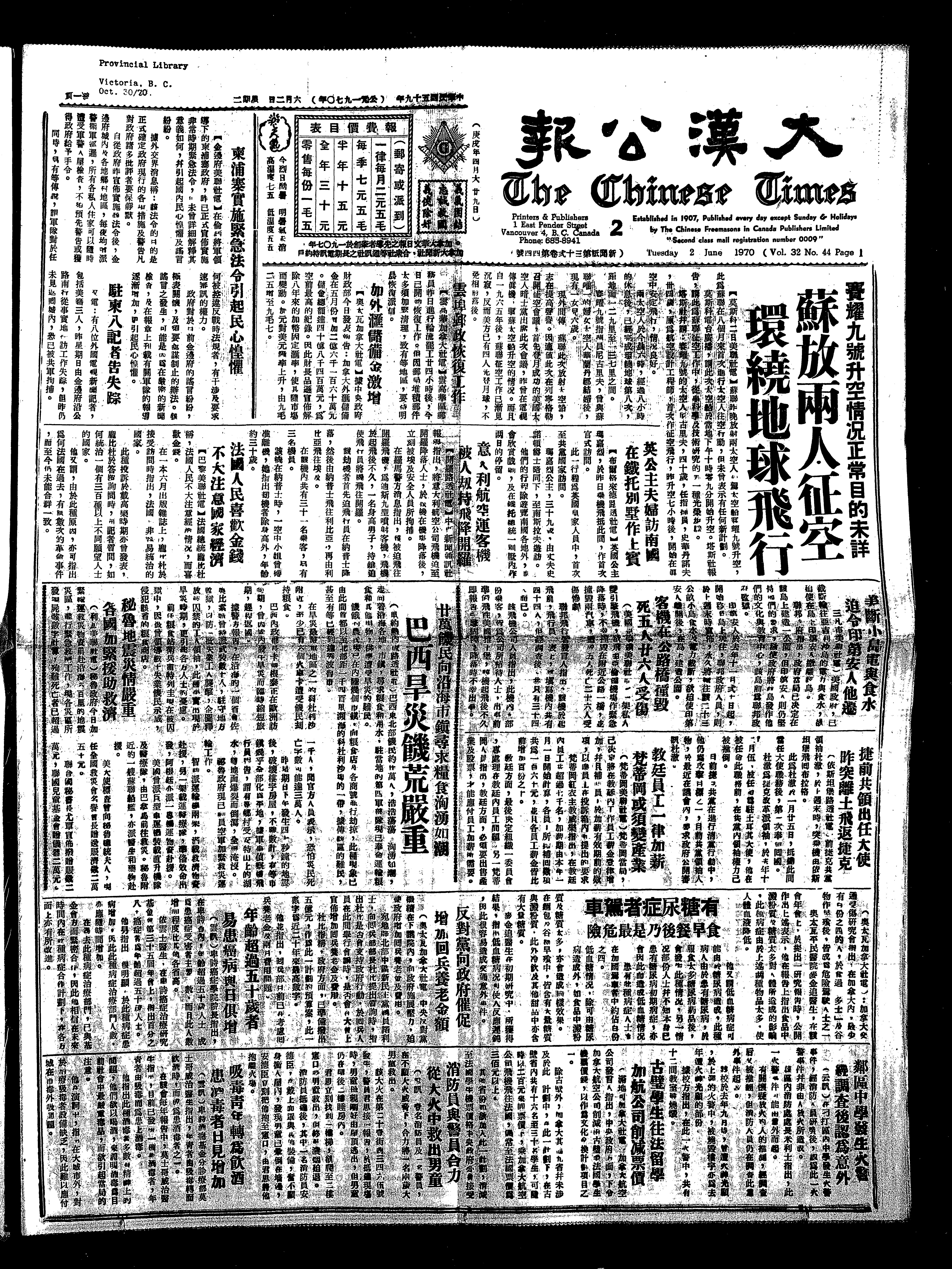 Chinese Canadians--British Columbia--Vancouver--Newspapers
