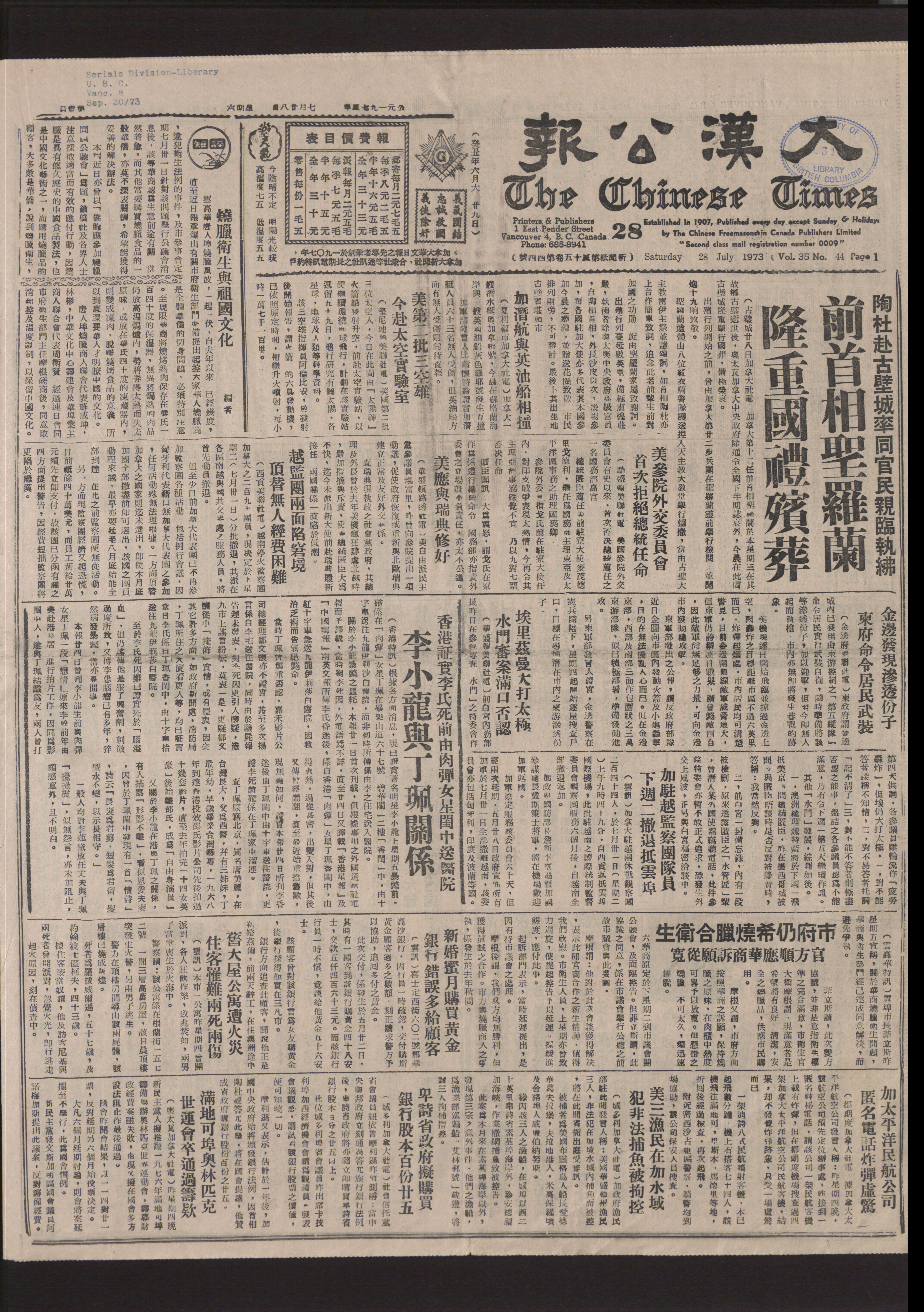 Chinese Times : [1973-07-28]