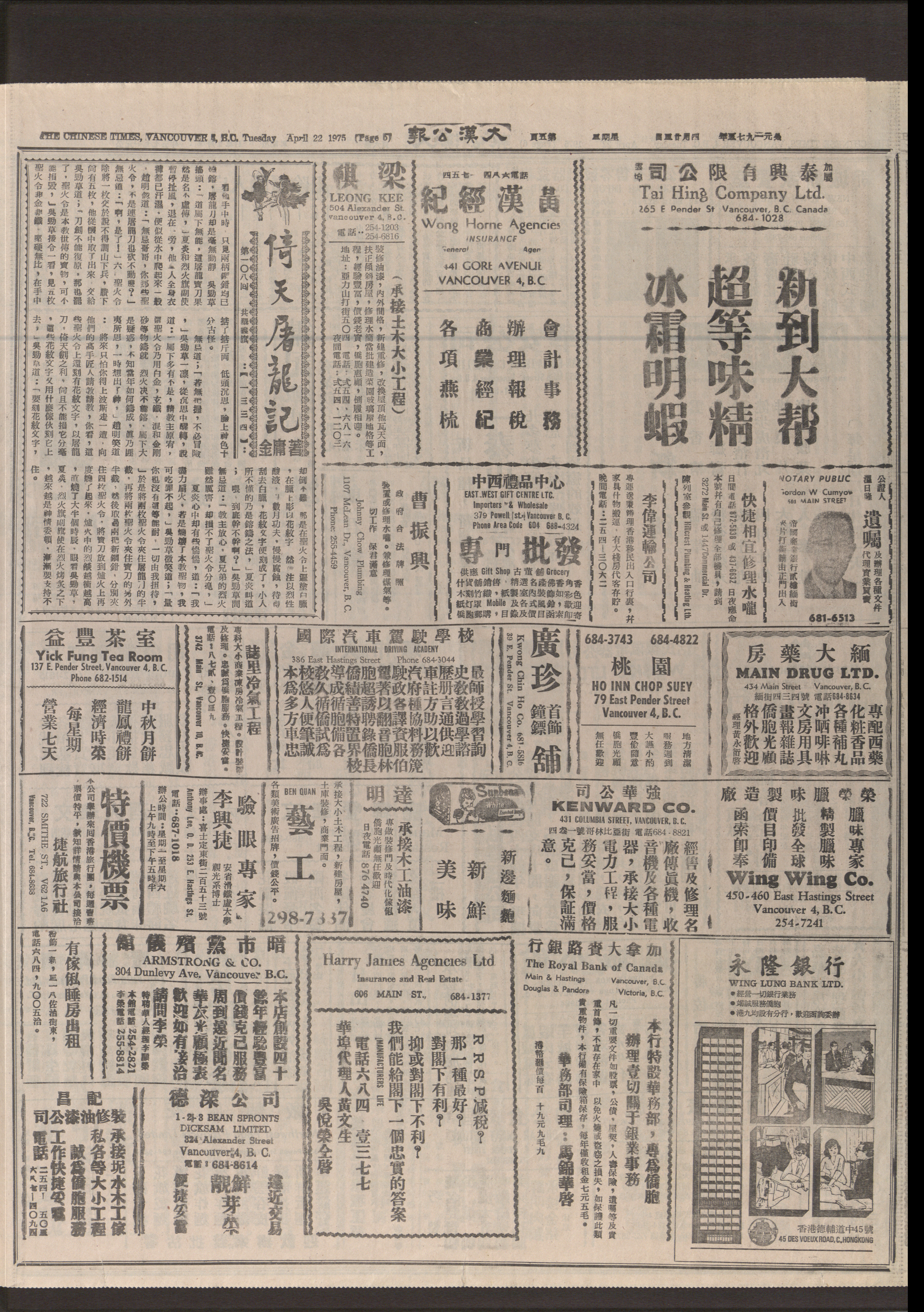 Vancouver, British Columbia : Tai Hon Kong Bo Ltd., 1975; 8 images avec recherche en texte intégral