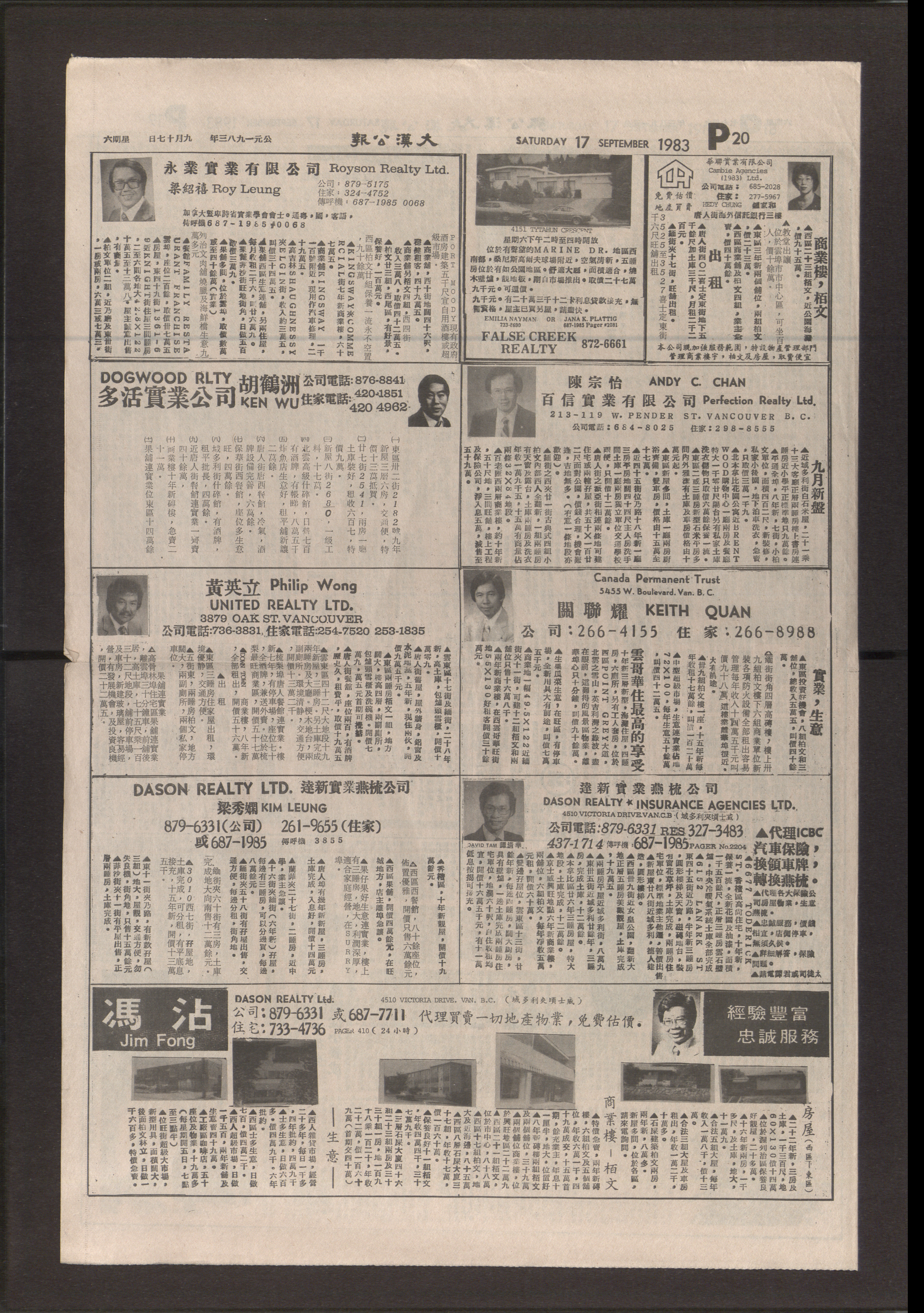 Vancouver, British Columbia : Tai Hon Kong Bo Ltd., 1983; 20 images avec recherche en texte intégral