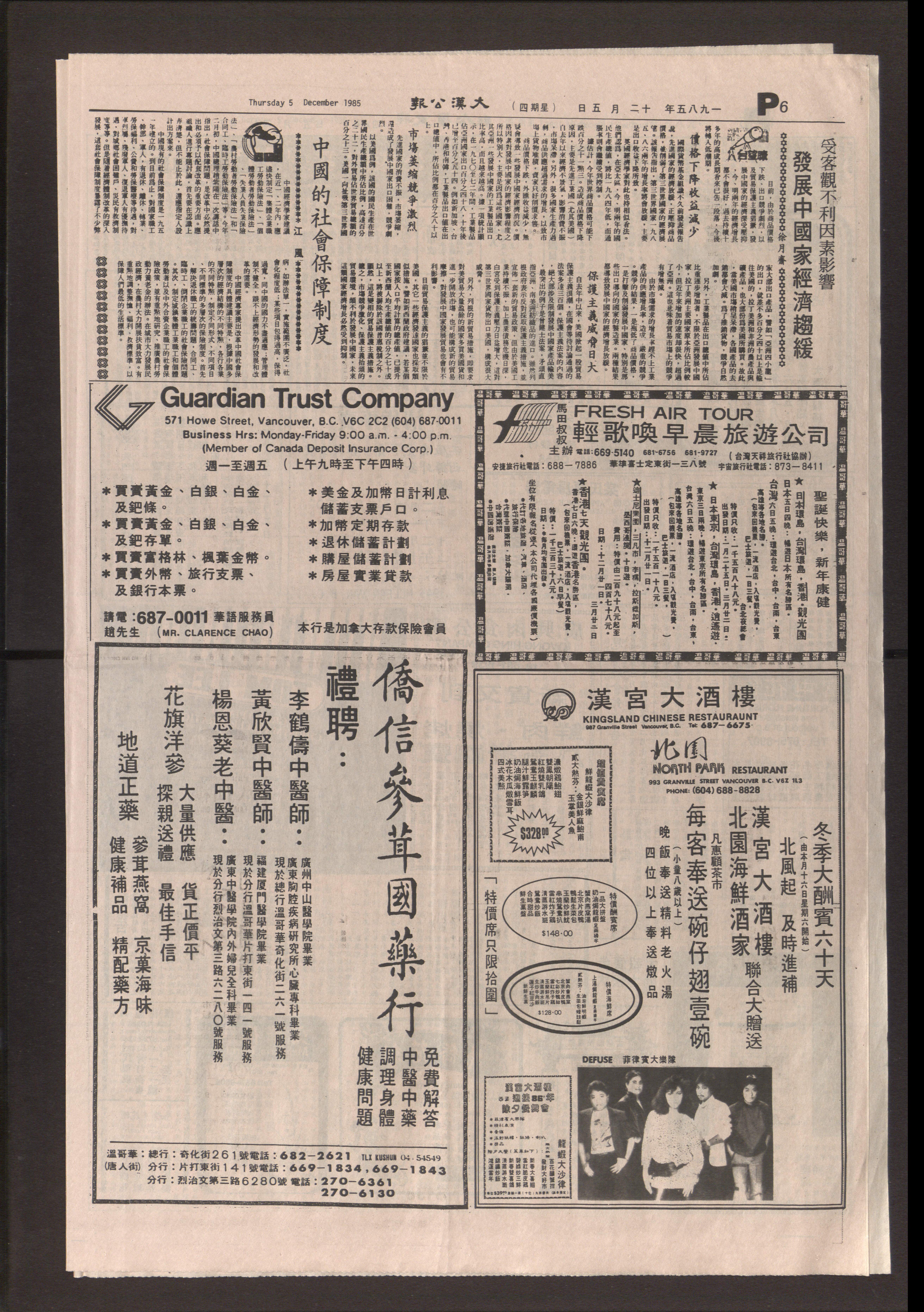 大漢公報 : [一九八五年十二月五日] - Adresse bibliographique