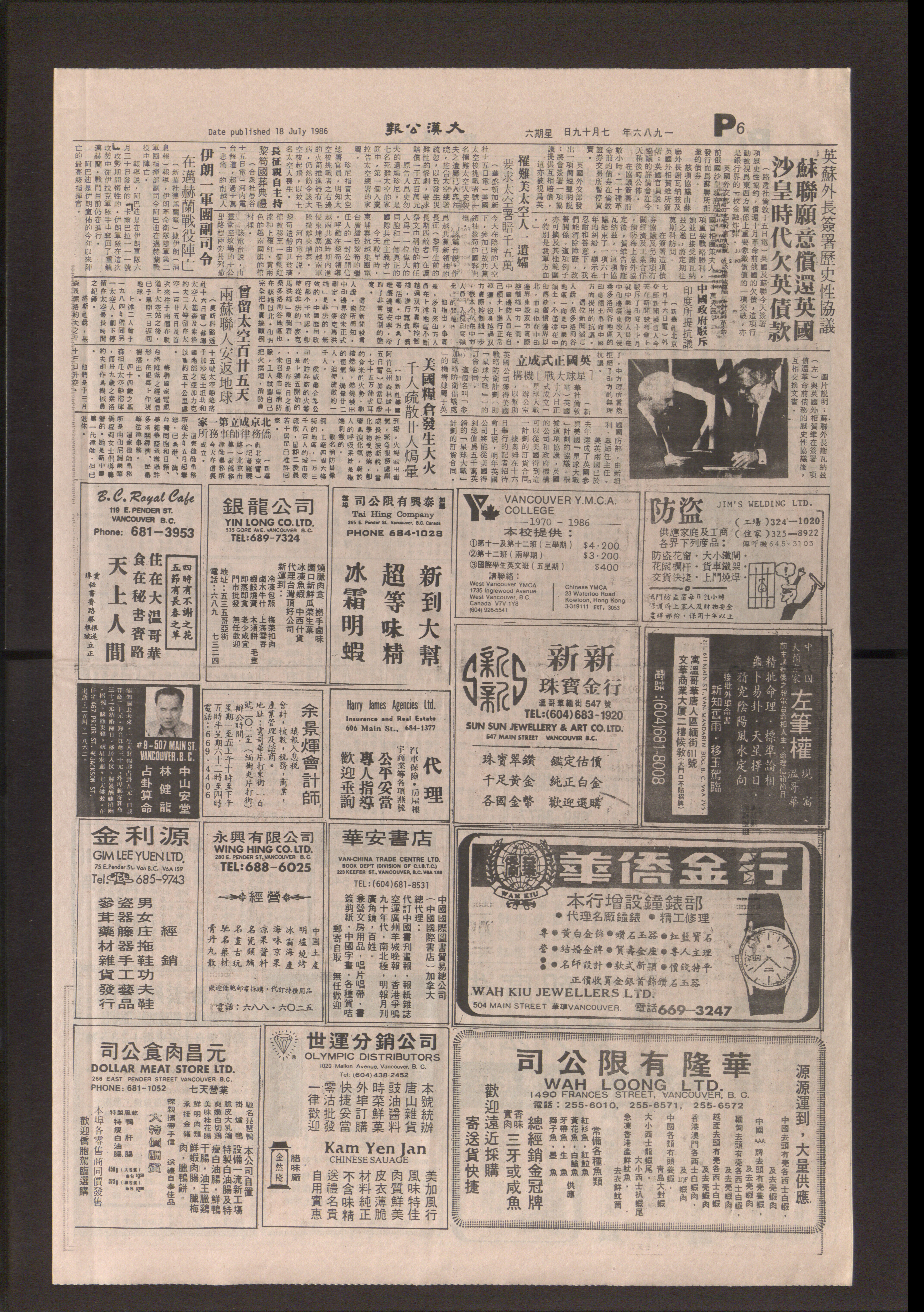 大漢公報 : [一九八六年七月十九日] - Published