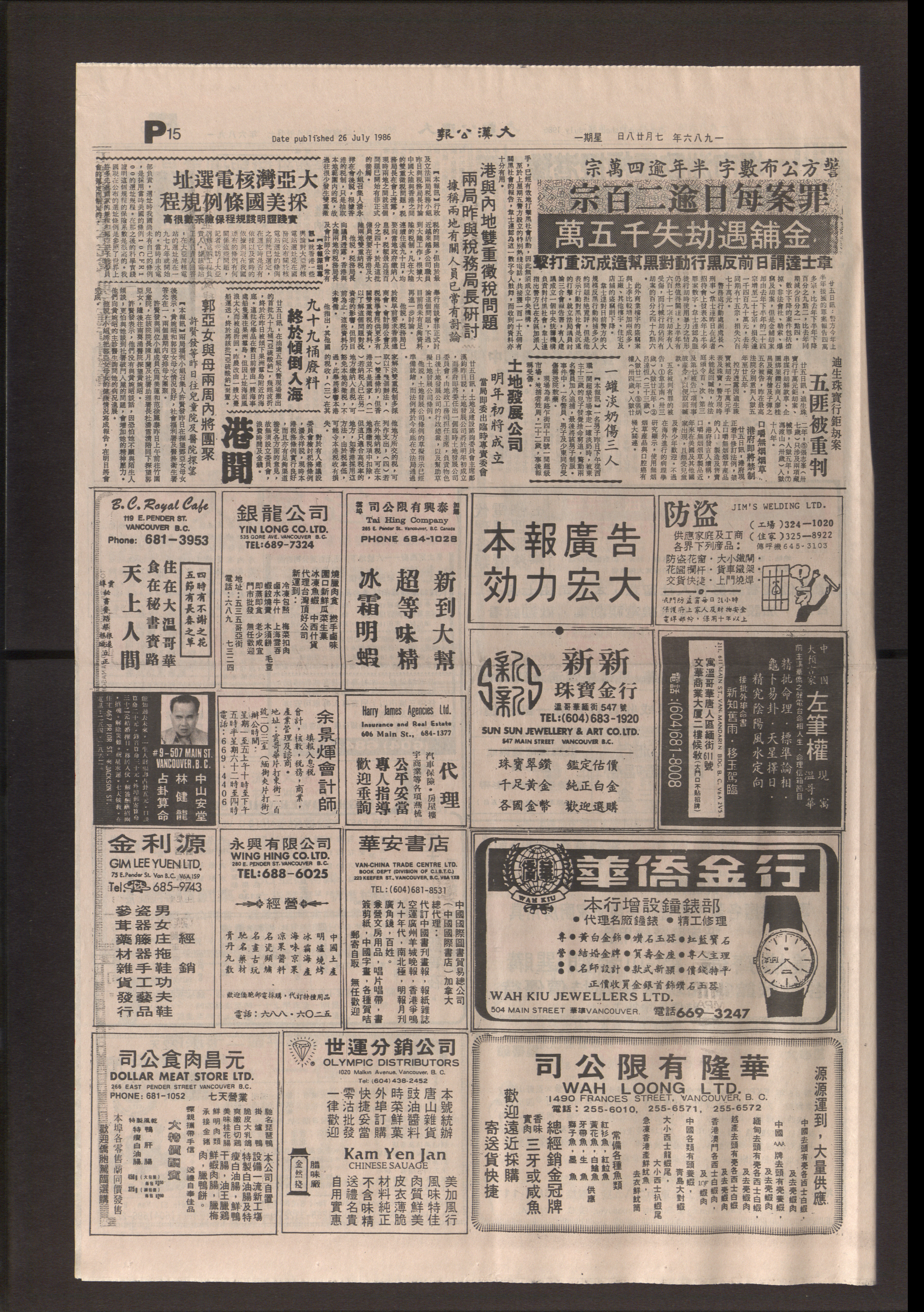 Chinese Canadians--British Columbia--Vancouver--Newspapers