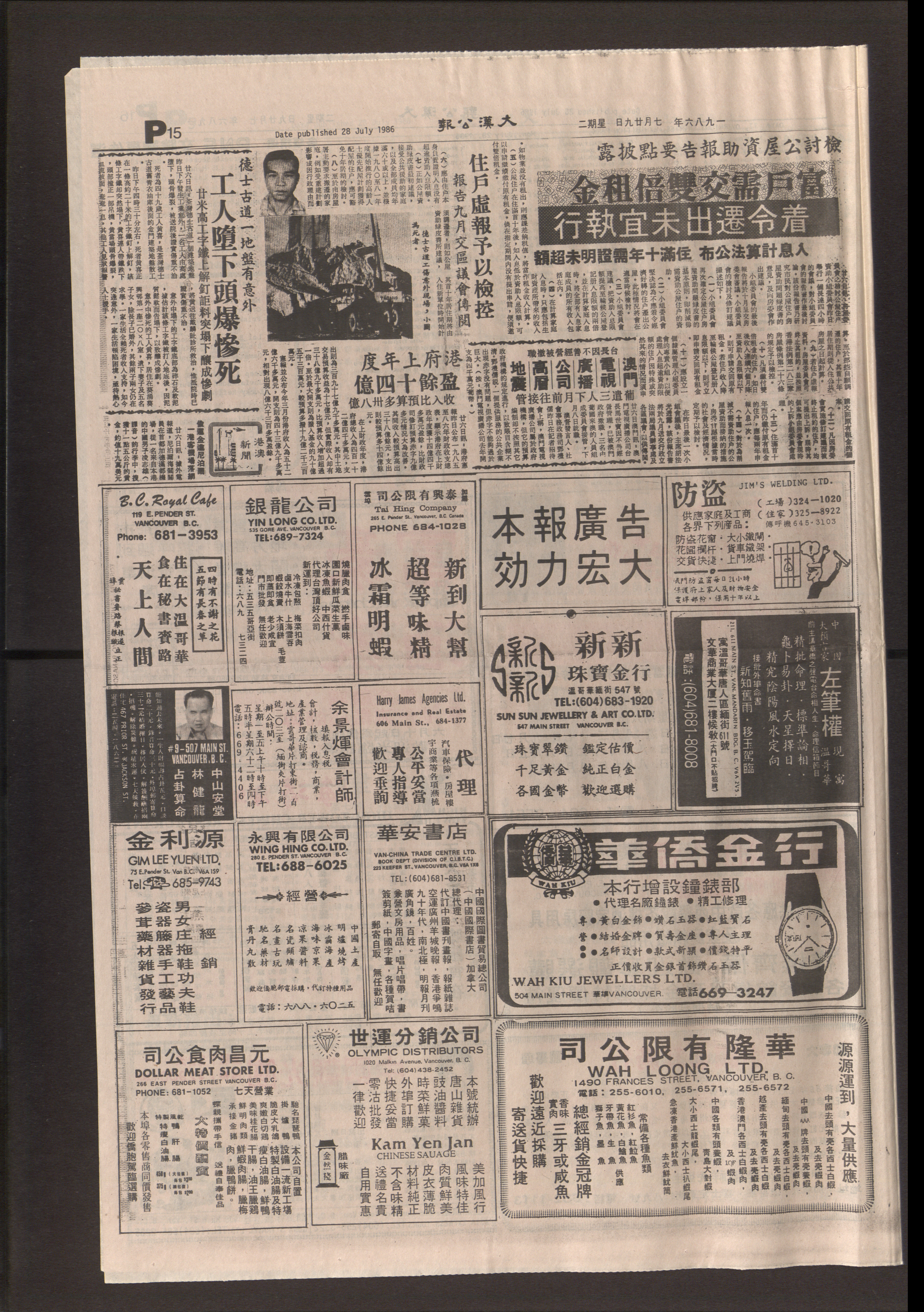 溫哥華 (不列顛哥倫比亞)-- 歷史--二十世紀--報紙 - Document original