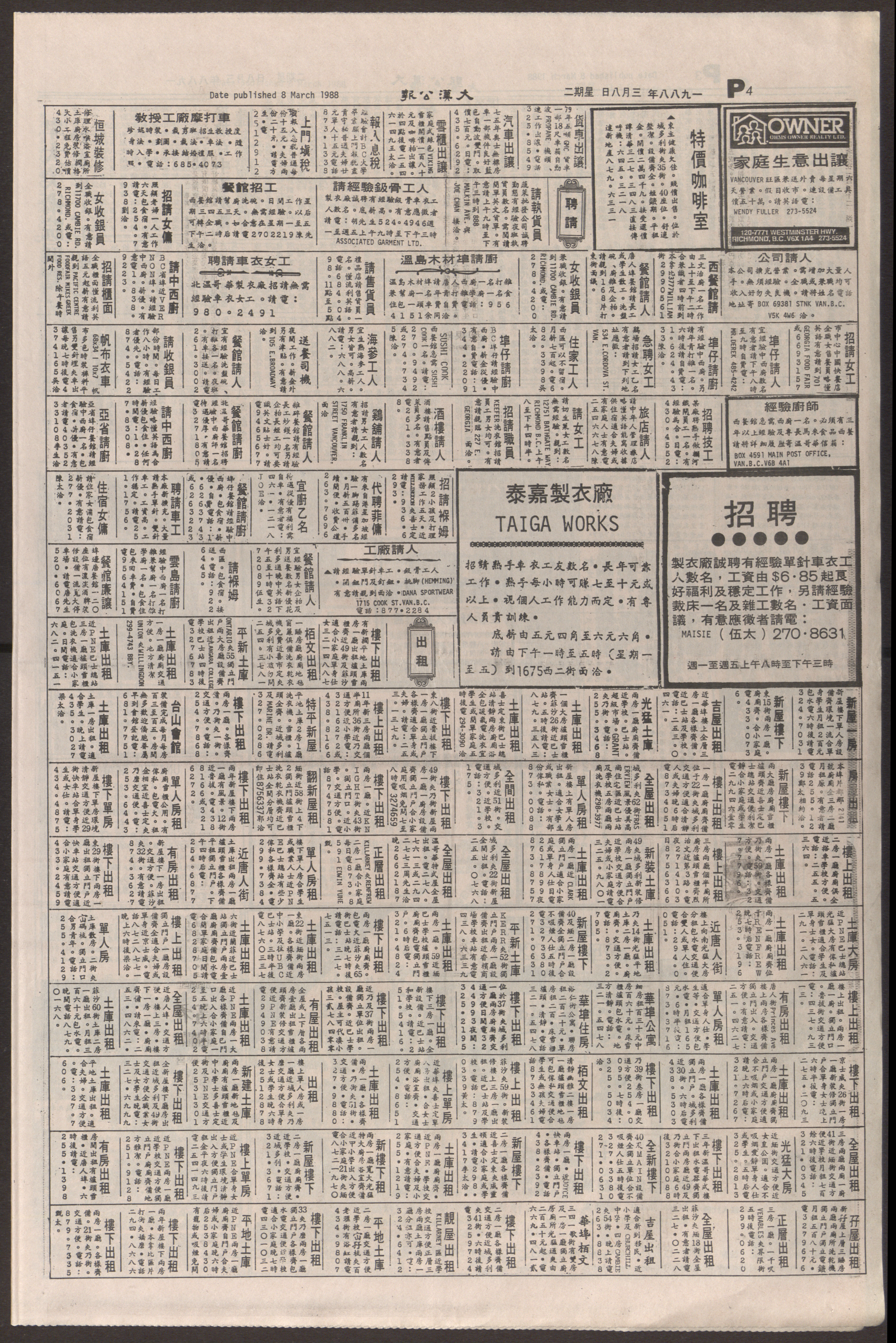 大漢公報 : [一九八八年三月八日] - Adresse bibliographique
