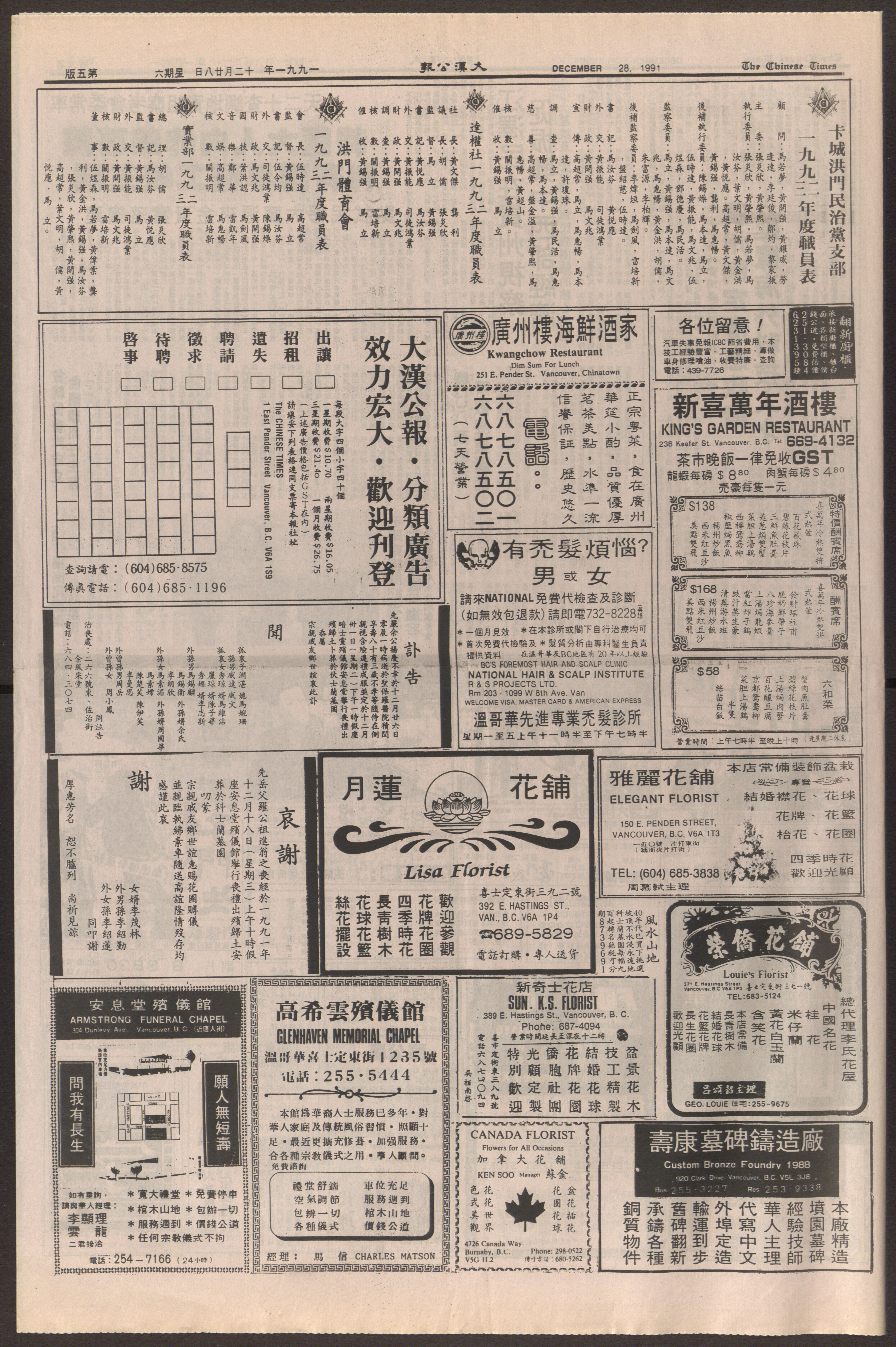 大漢公報 : Chinese Times : [1991-12-28]