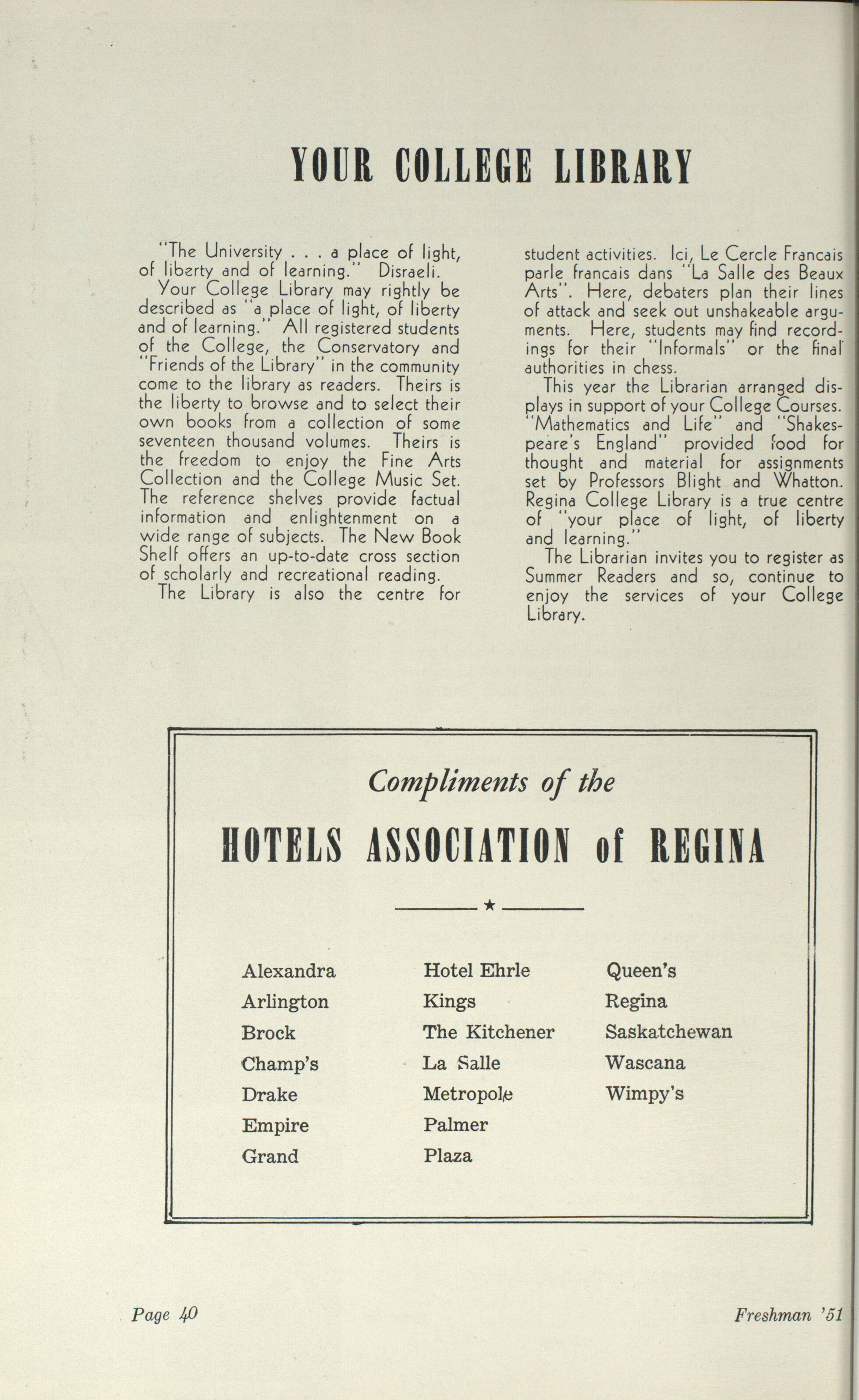 Fond University of Saskatchewan, Regina College (1934-1961)