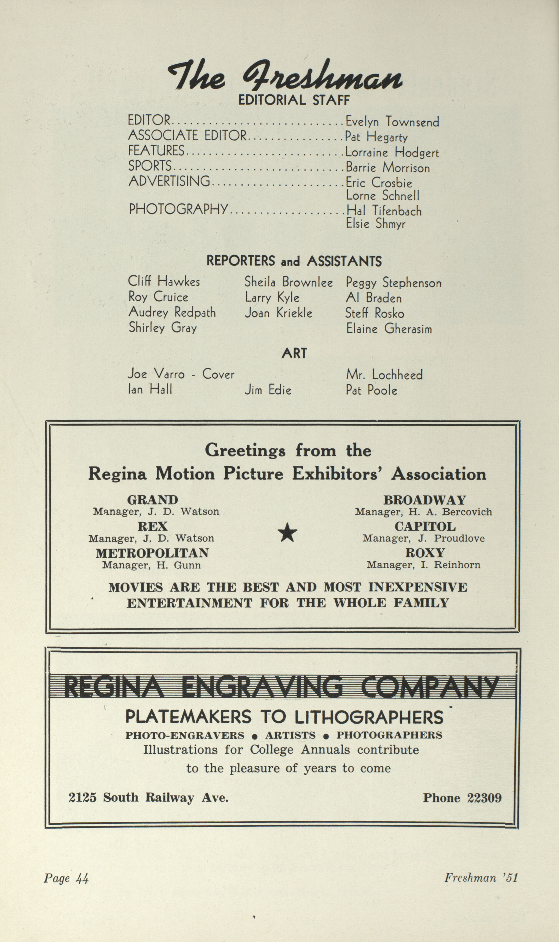 - Regina, Sask. : University of Saskatchewan, Regina College, 1951