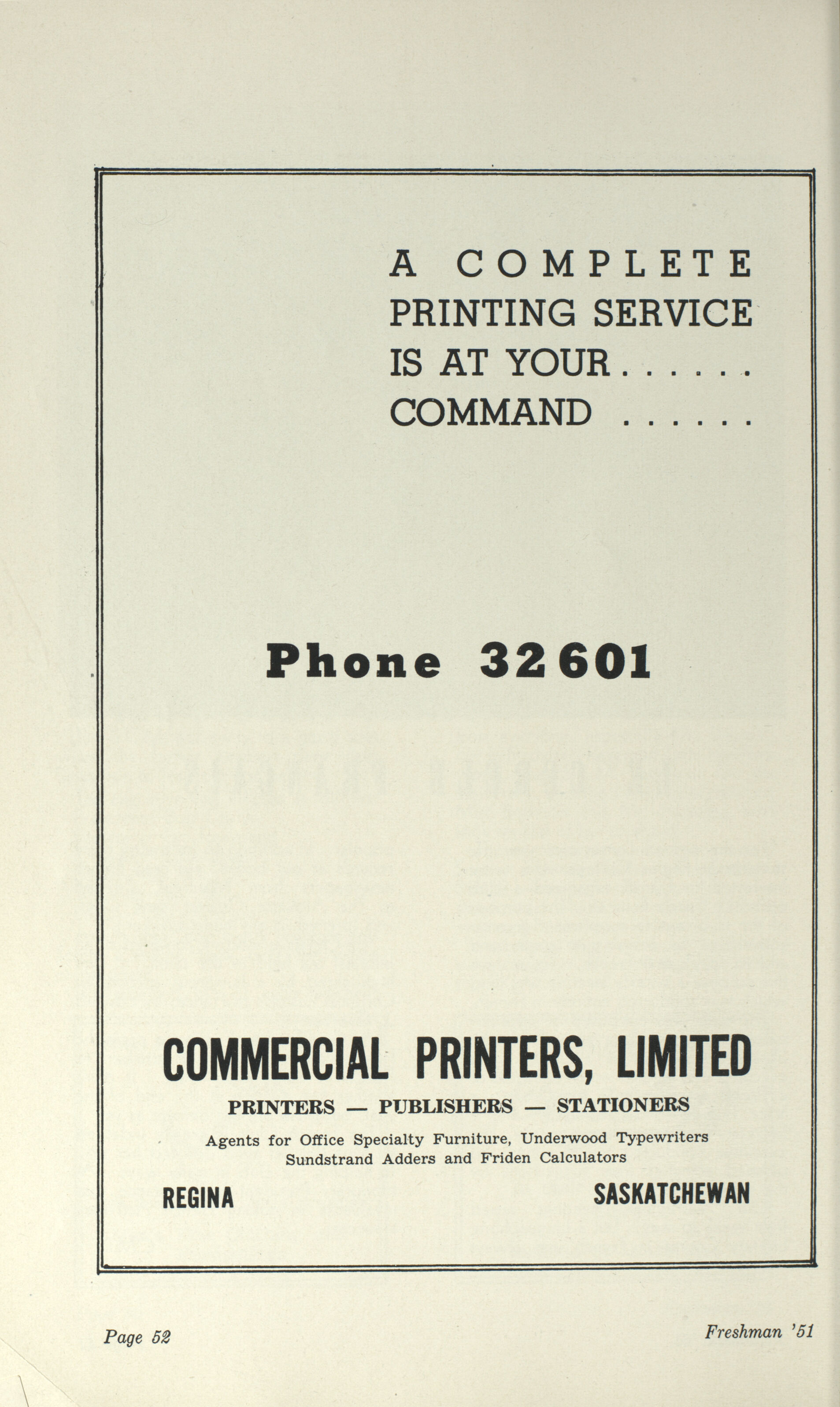- Regina, Sask. : University of Saskatchewan, Regina College, 1951