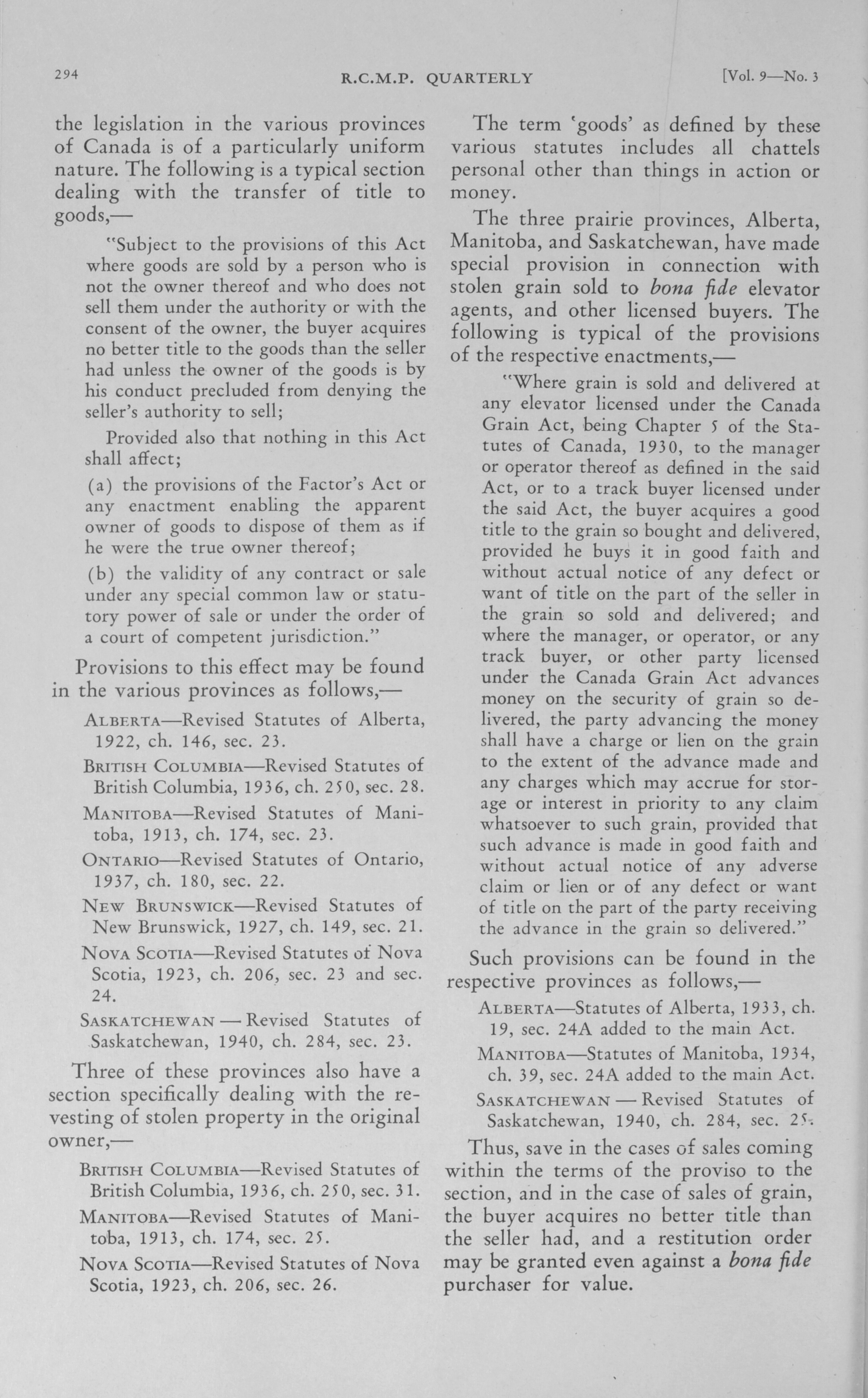 Royal Canadian Mounted Police quarterly. : Royal Canadian Mounted Police quarterly: Vol. 9, No. 3 (January, 1942)