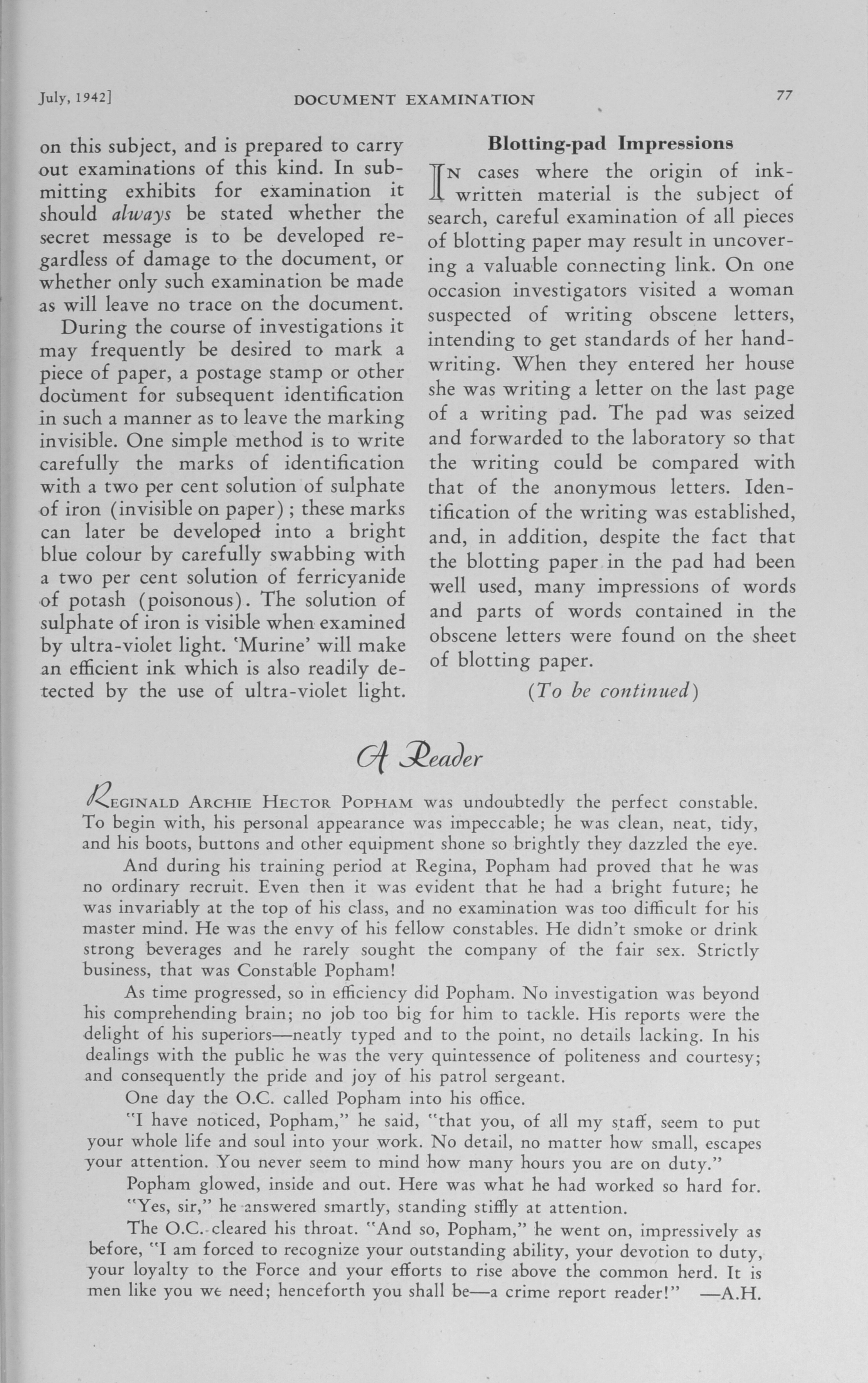 Royal Canadian Mounted Police quarterly. : Royal Canadian Mounted Police quarterly: Vol. 10, No. 1 (July, 1942)