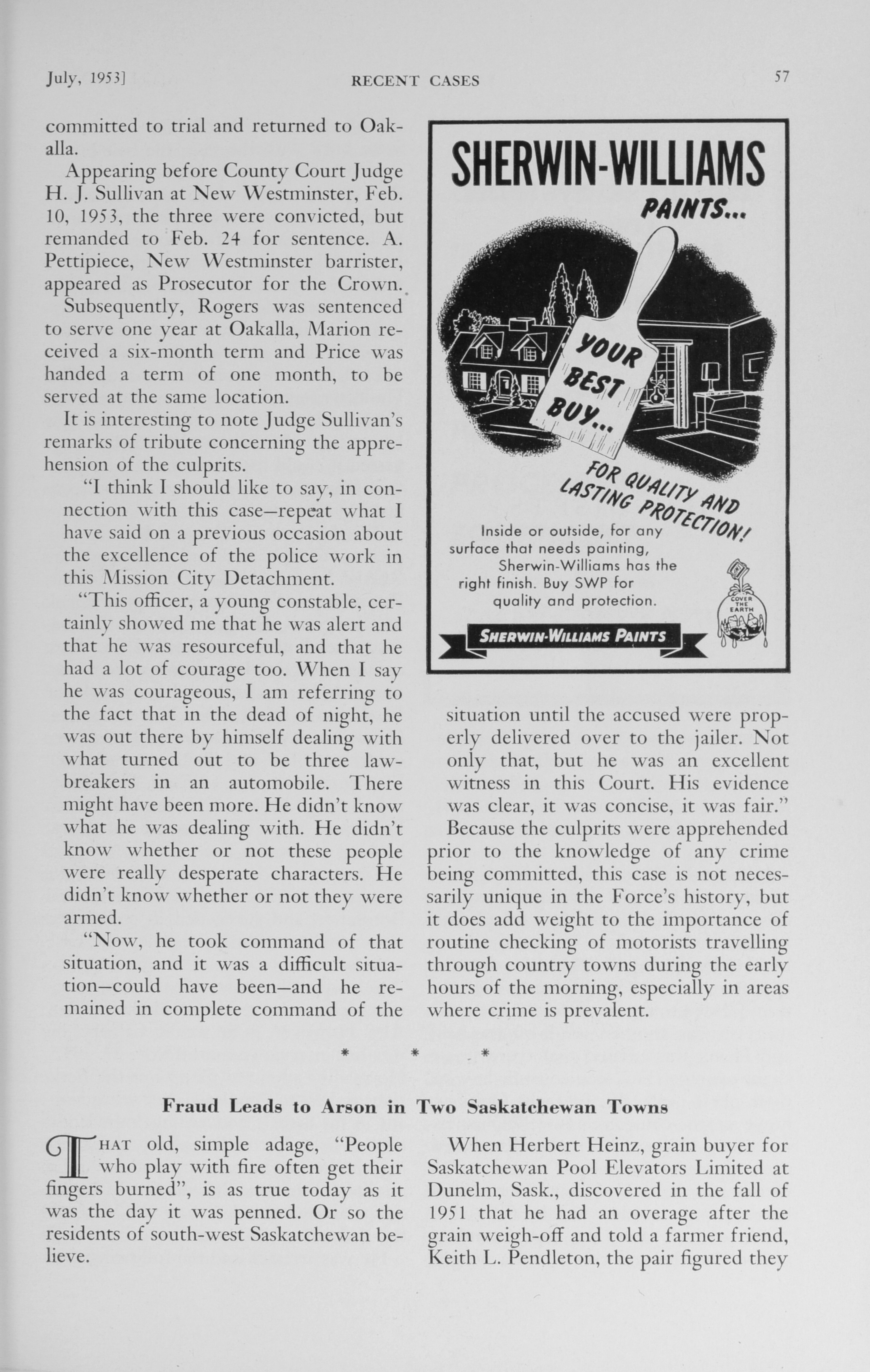 Royal Canadian Mounted Police quarterly: Vol. 19, No. 1 (July, 1953)