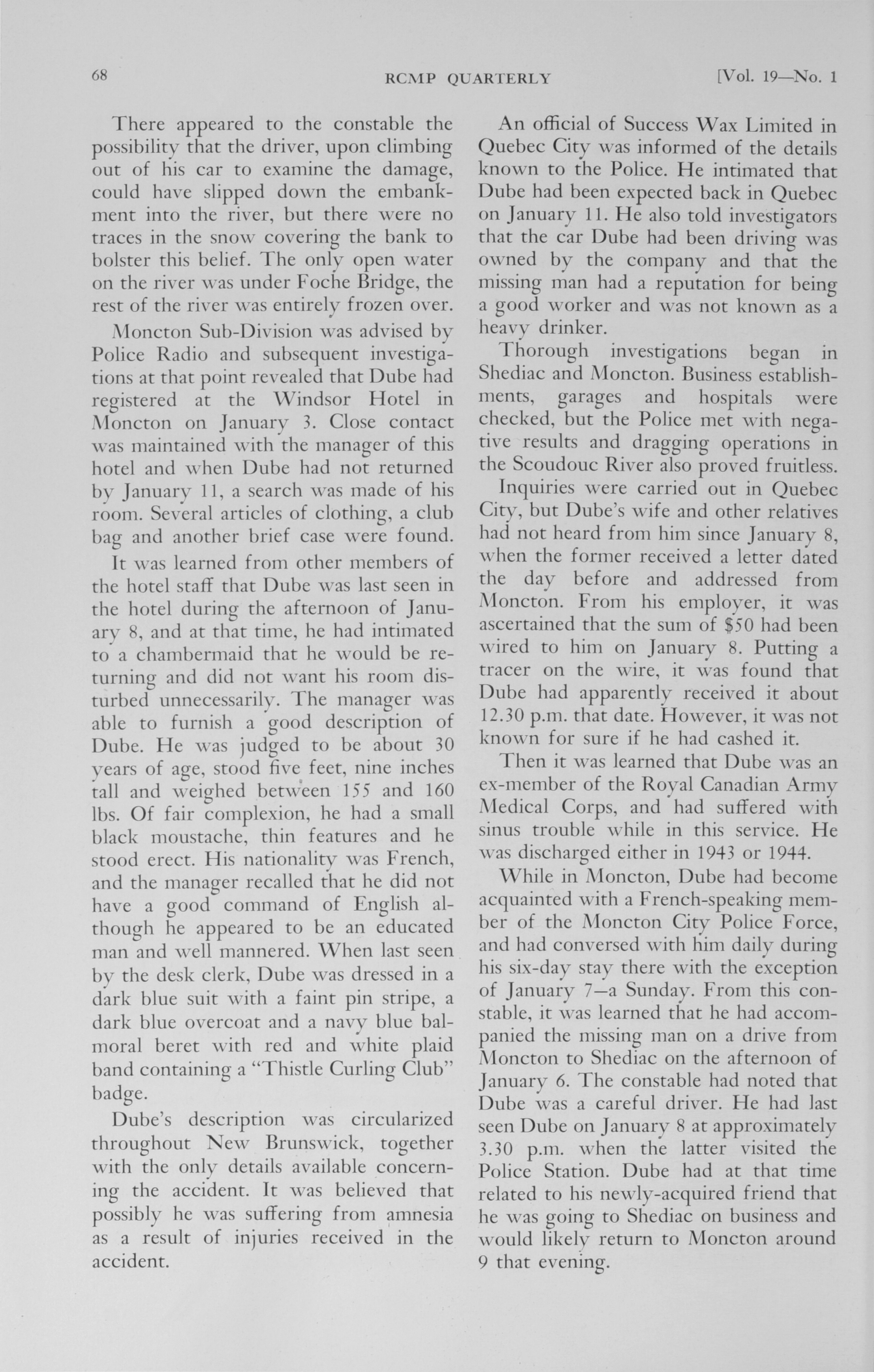 Royal Canadian Mounted Police quarterly: Vol. 19, No. 1 (July, 1953)