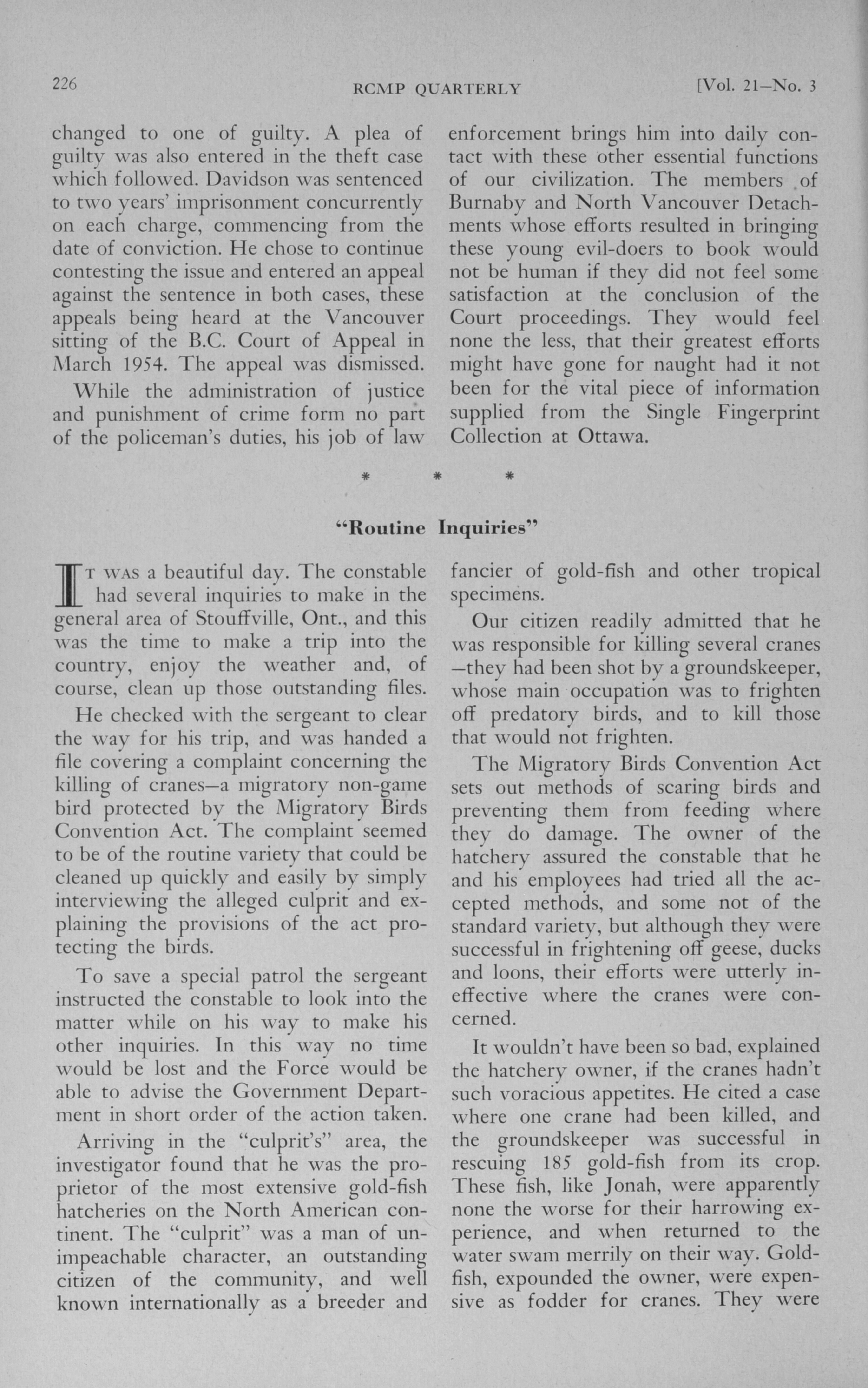 - Royal Canadian Mounted Police quarterly: Vol. 21, No. 3 (January, 1956)