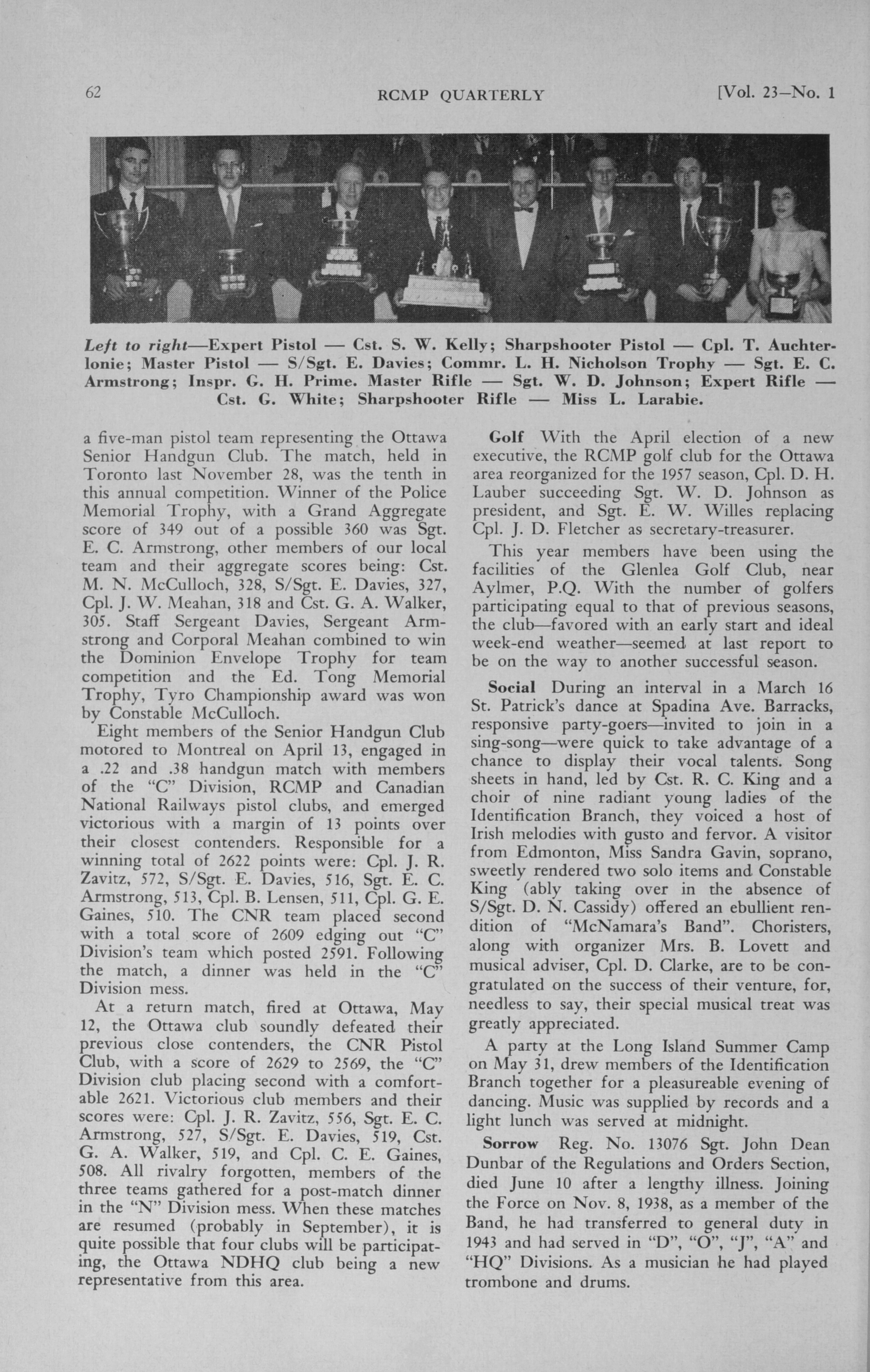- Royal Canadian Mounted Police quarterly: Vol. 23, No. 1 (July, 1957)