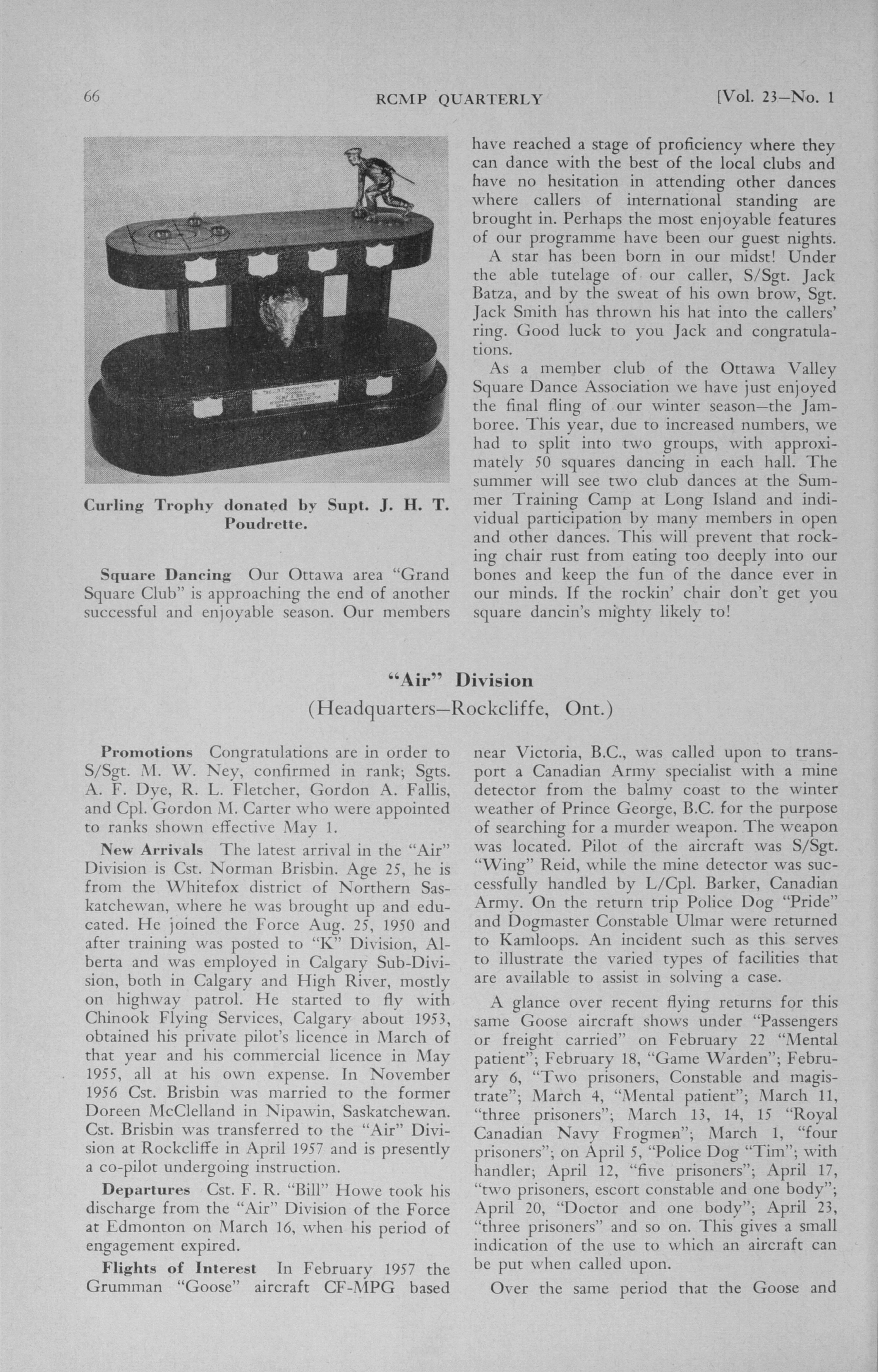 - Royal Canadian Mounted Police quarterly: Vol. 23, No. 1 (July, 1957)