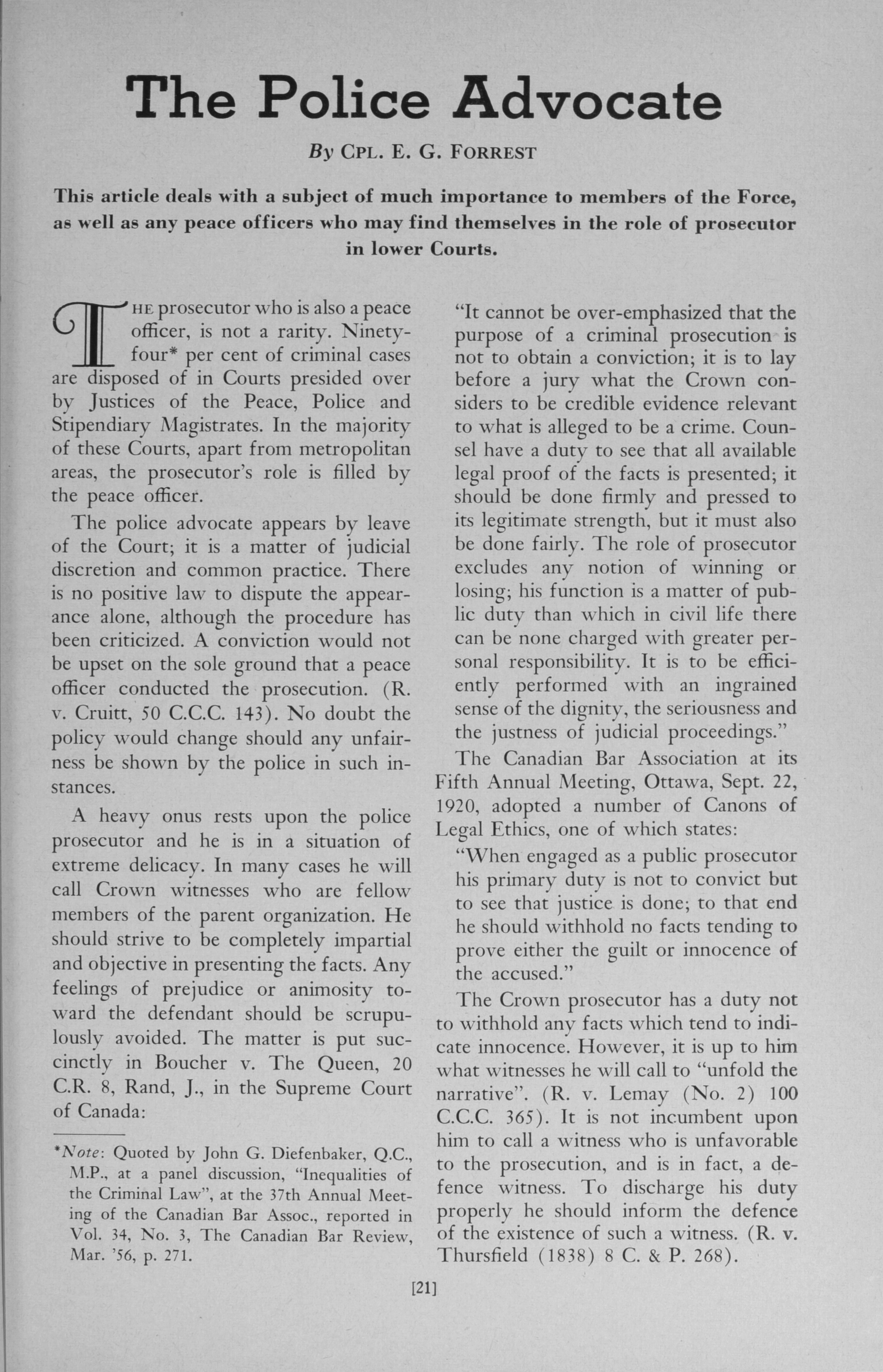 Royal Canadian Mounted Police quarterly. : Royal Canadian Mounted Police quarterly: Vol. 25, No. 1 (July, 1959)