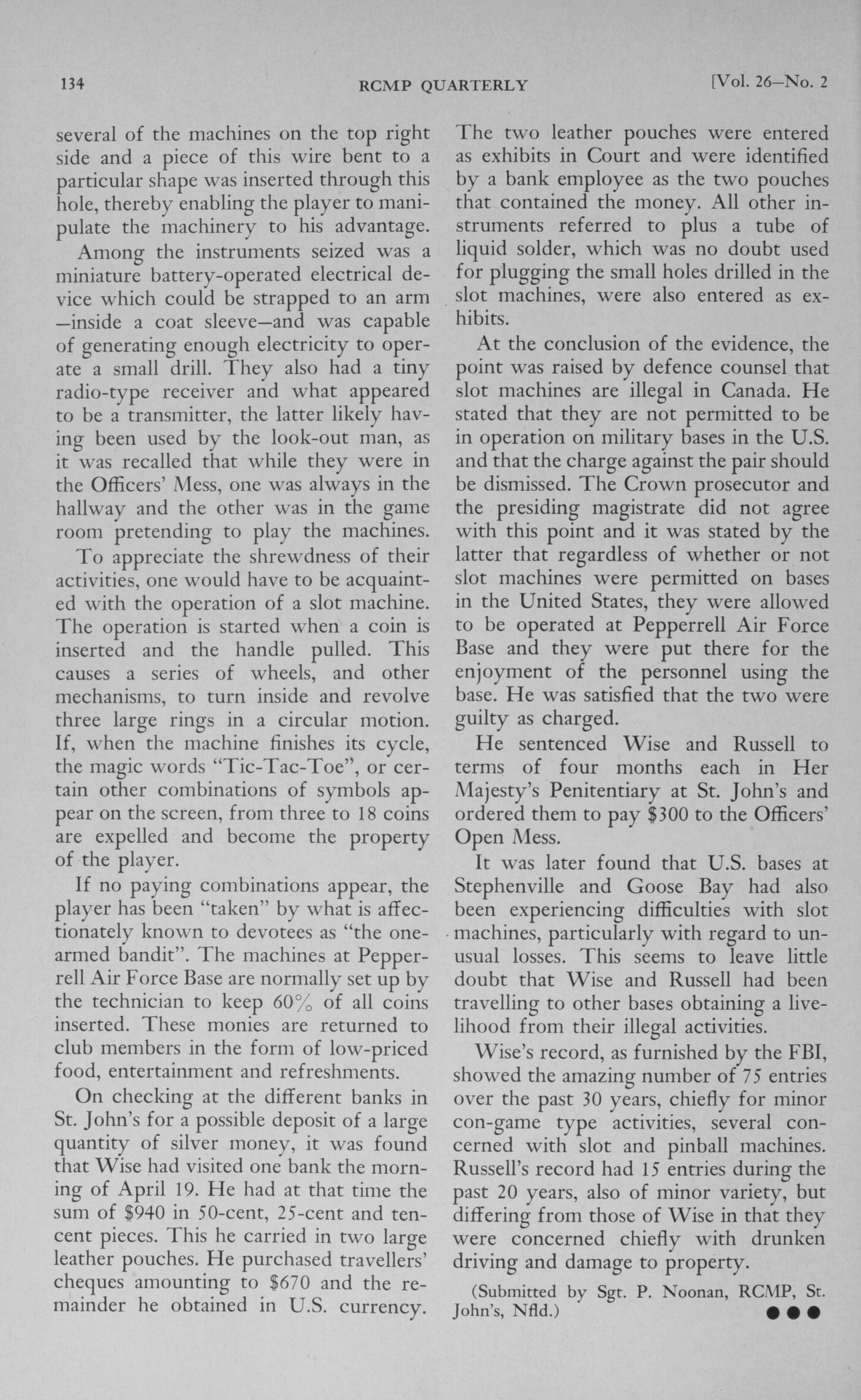 Royal Canadian Mounted Police quarterly. : Royal Canadian Mounted Police quarterly: Vol. 26, No. 2 (October, 1960)