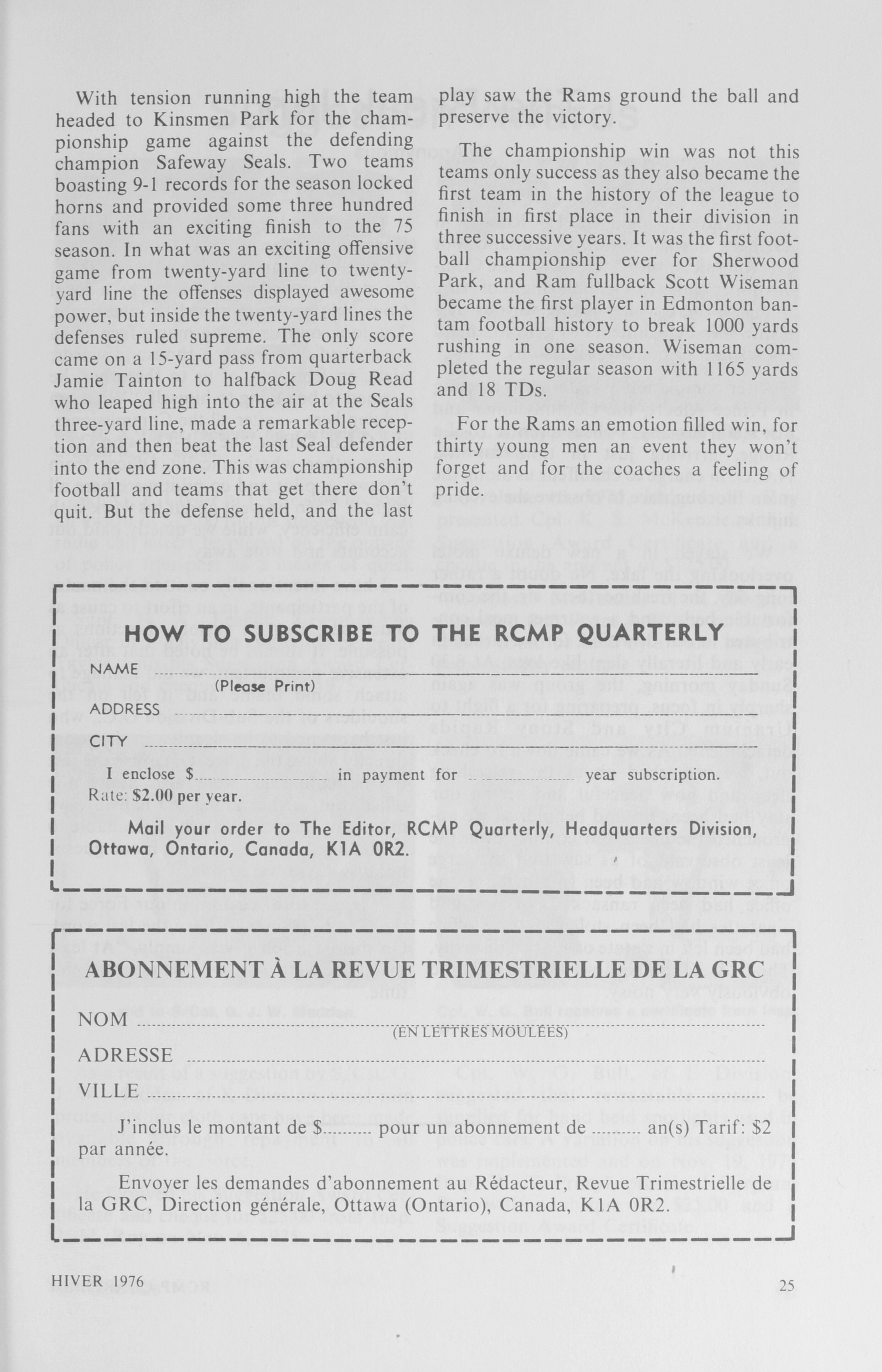 - RCMP quarterly = Revue trimestrielle de la GRC: Vol. 41, No. 1 (Winter, 1976)