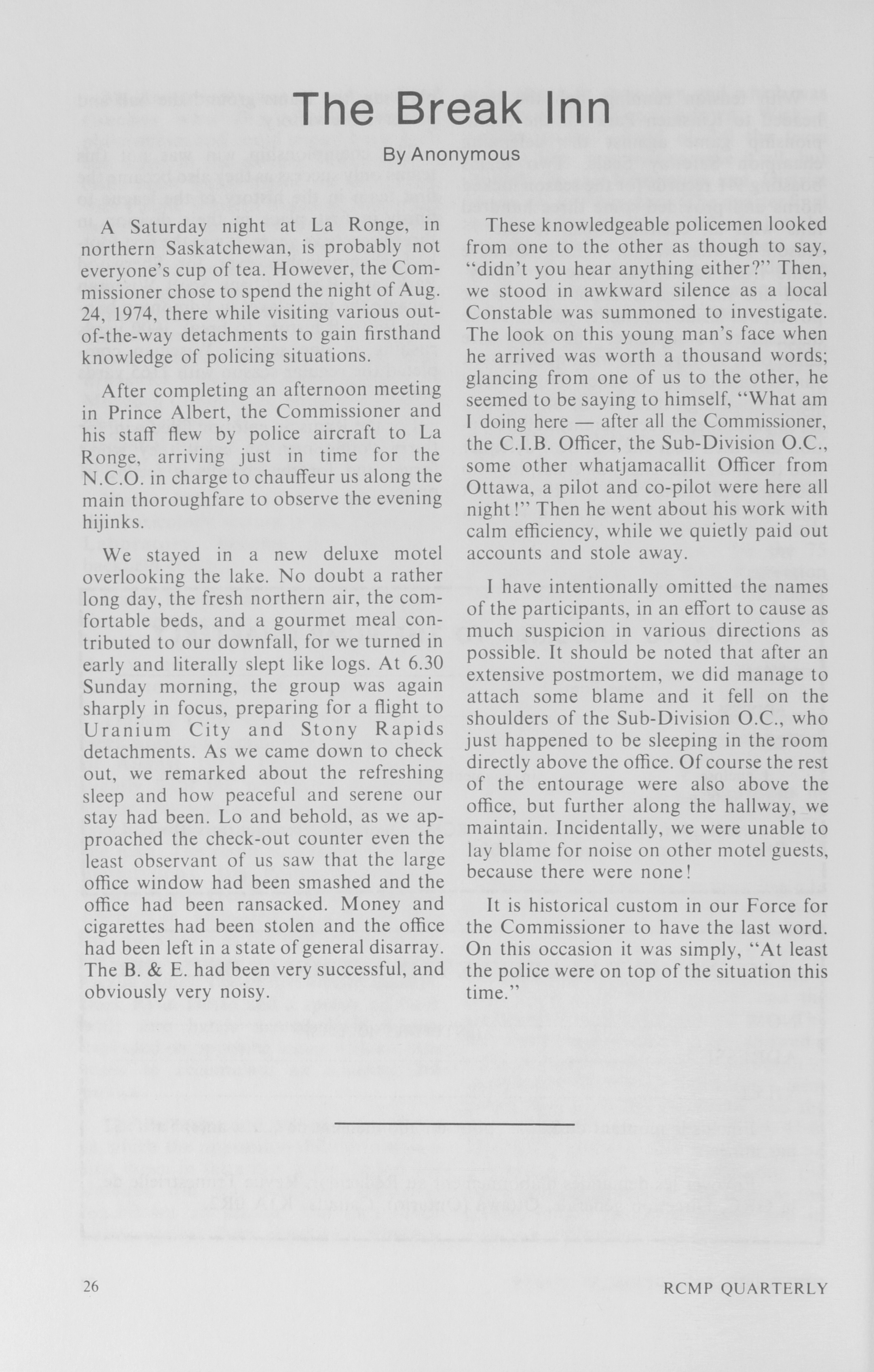 - RCMP quarterly = Revue trimestrielle de la GRC: Vol. 41, No. 1 (Winter, 1976)