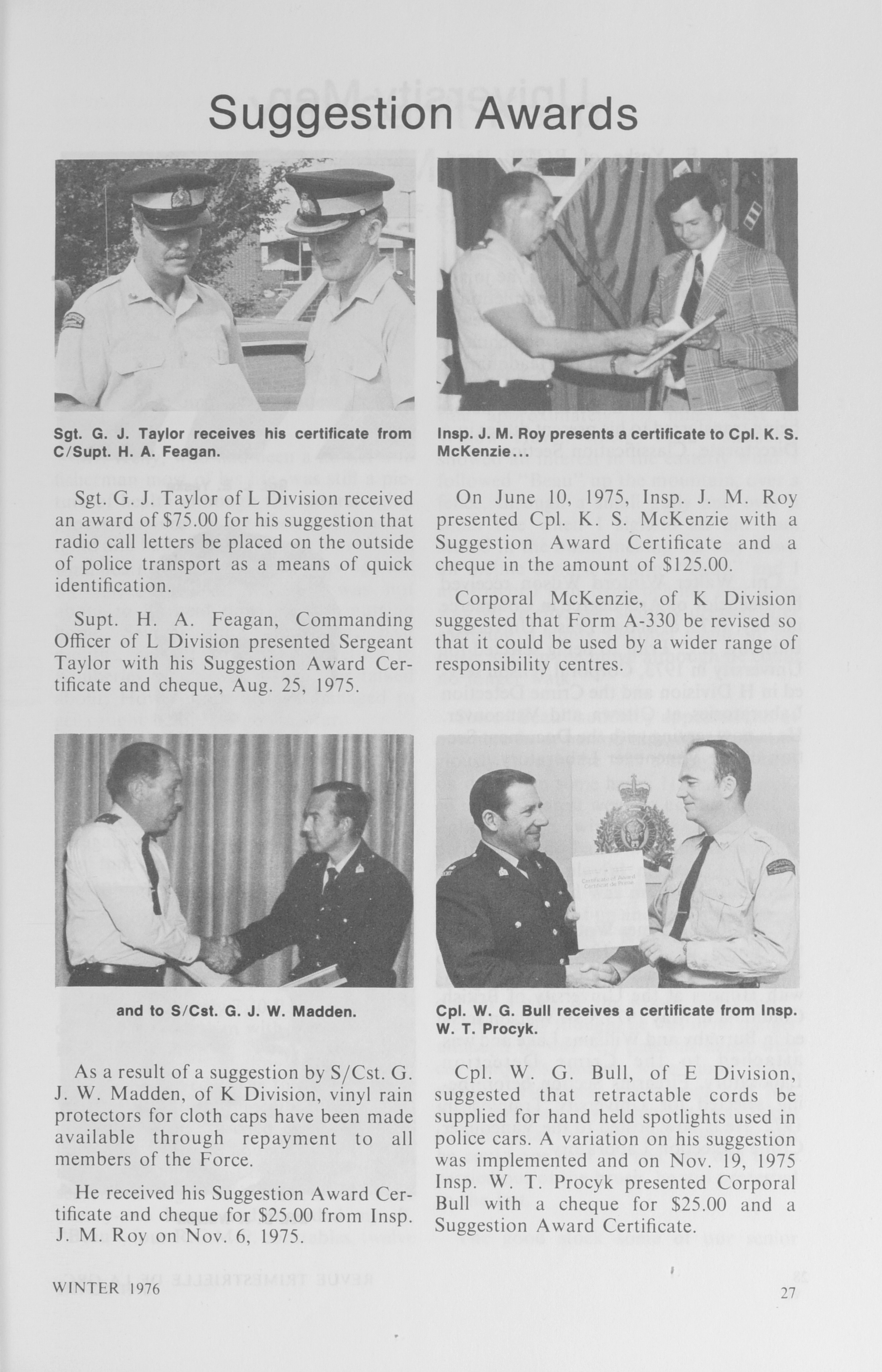 - RCMP quarterly = Revue trimestrielle de la GRC: Vol. 41, No. 1 (Winter, 1976)