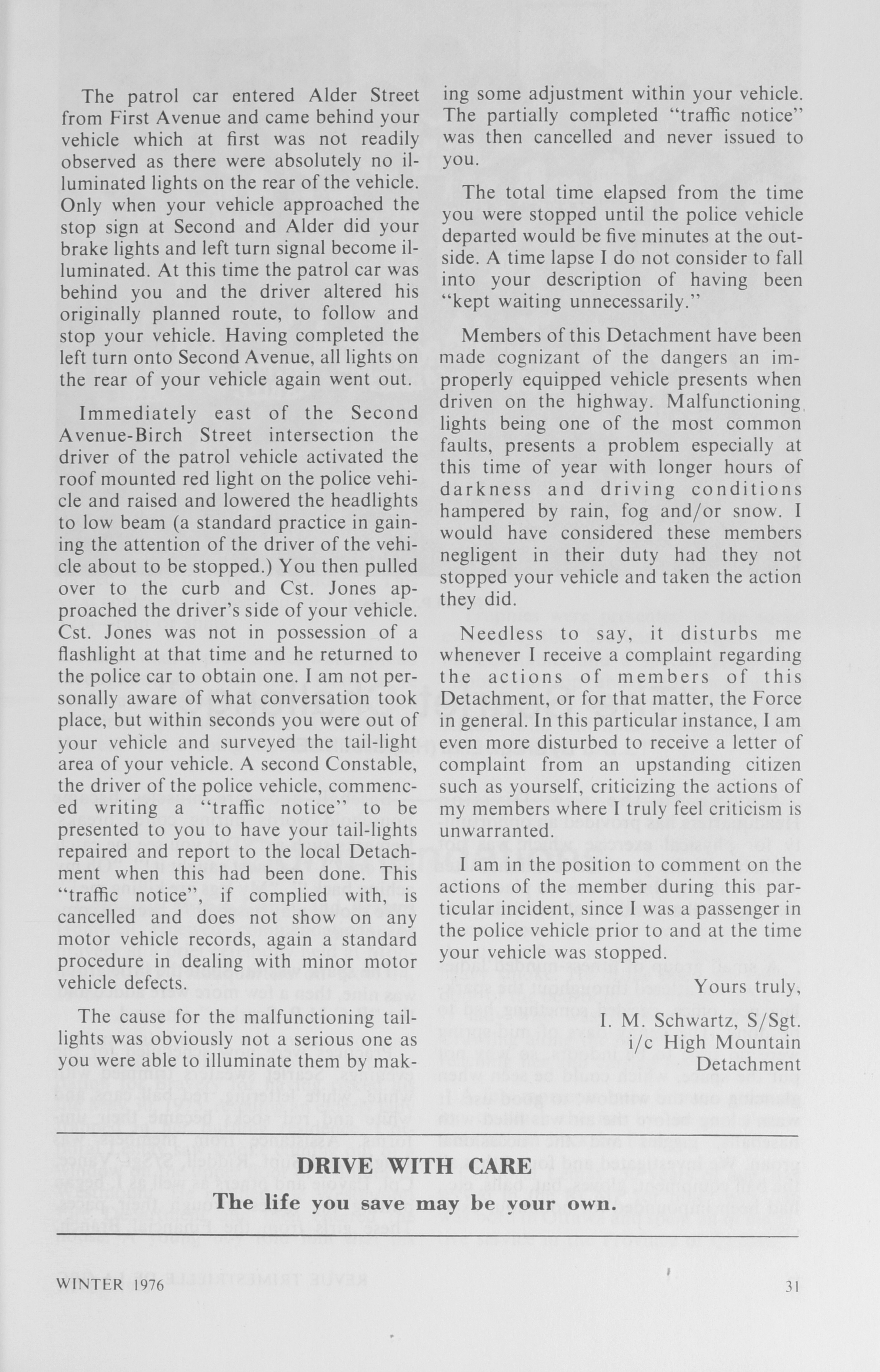 - RCMP quarterly = Revue trimestrielle de la GRC: Vol. 41, No. 1 (Winter, 1976)