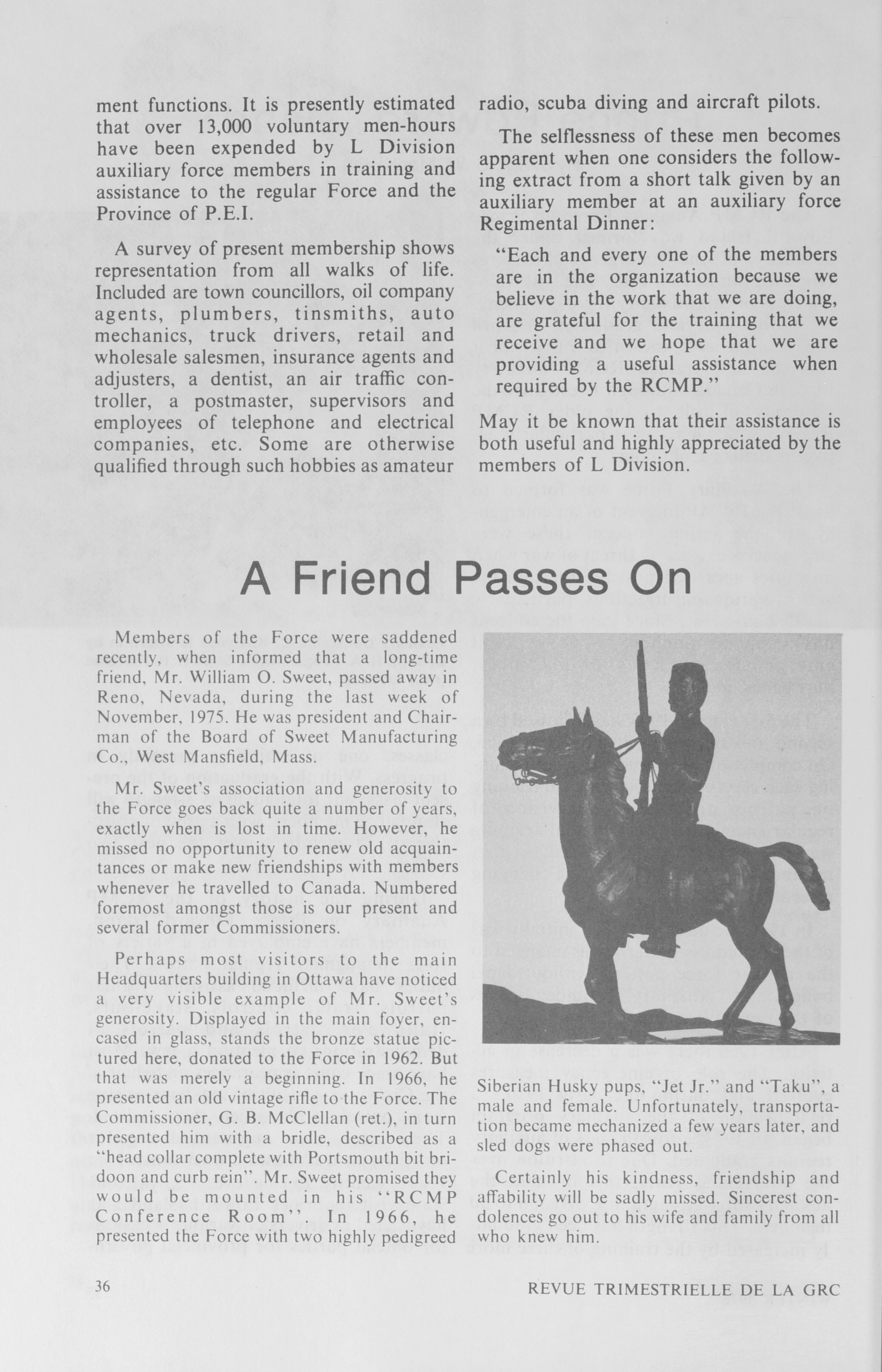 - RCMP quarterly = Revue trimestrielle de la GRC: Vol. 41, No. 1 (Winter, 1976)