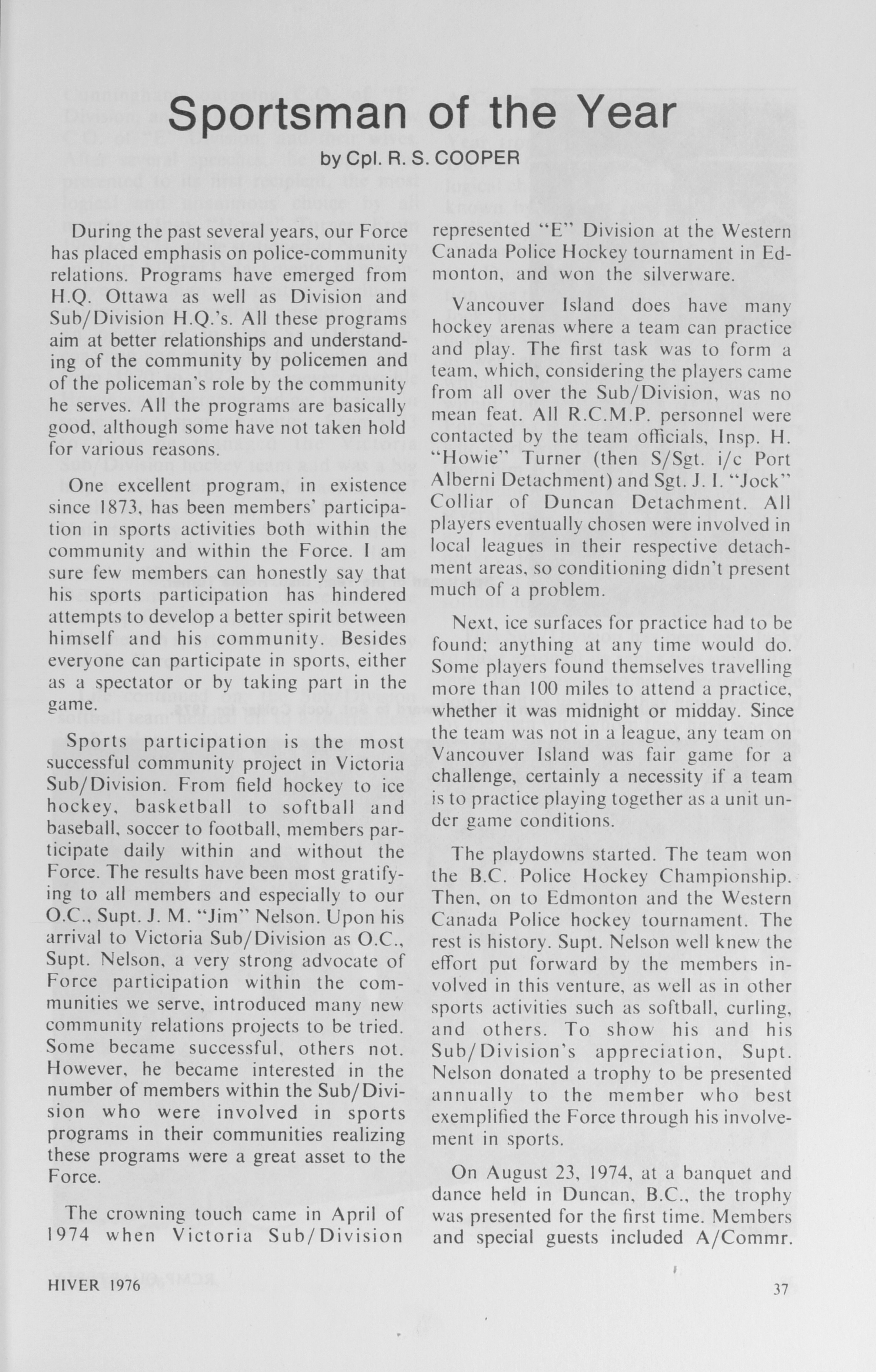 - RCMP quarterly = Revue trimestrielle de la GRC: Vol. 41, No. 1 (Winter, 1976)