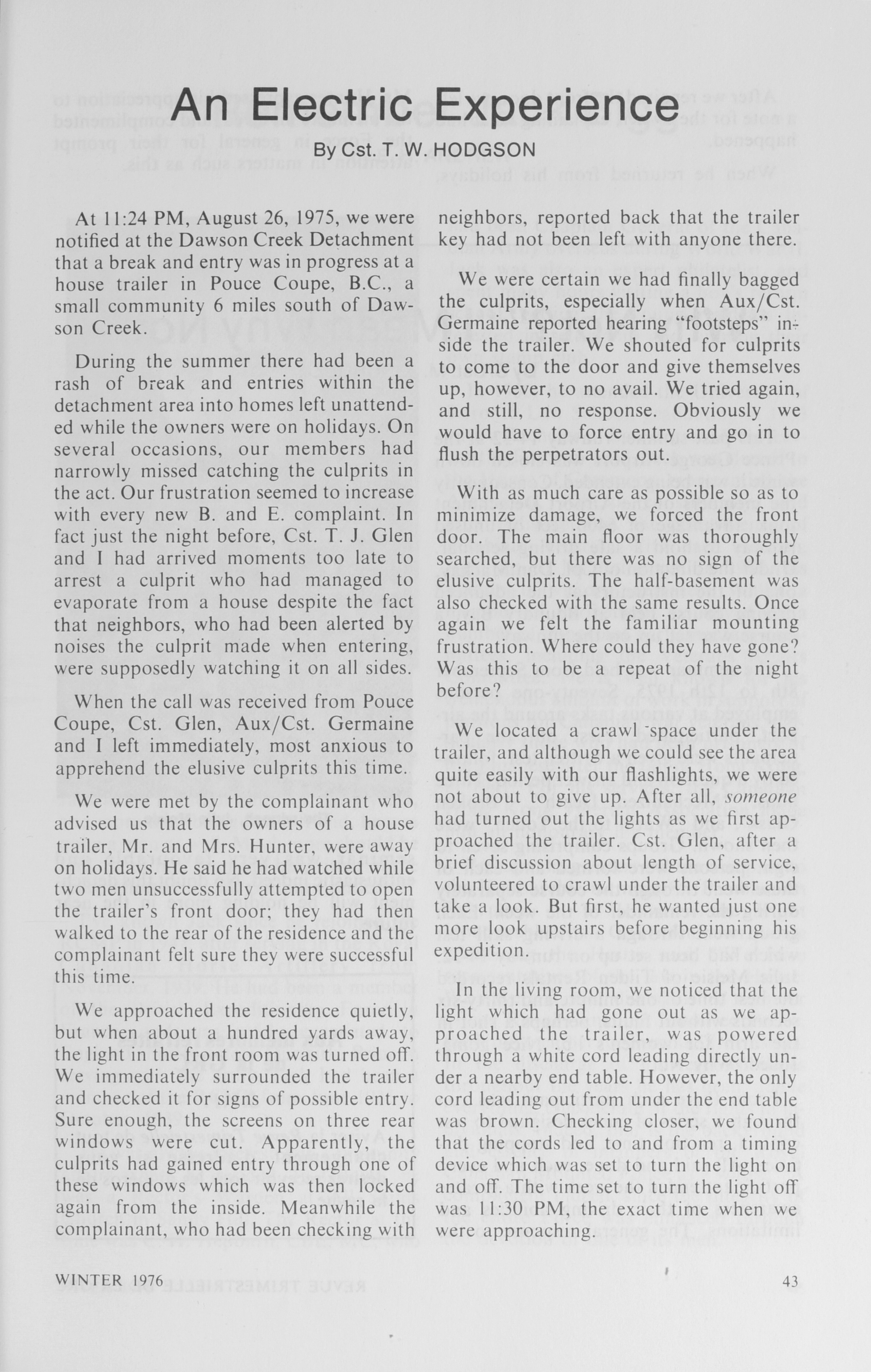 - RCMP quarterly = Revue trimestrielle de la GRC: Vol. 41, No. 1 (Winter, 1976)
