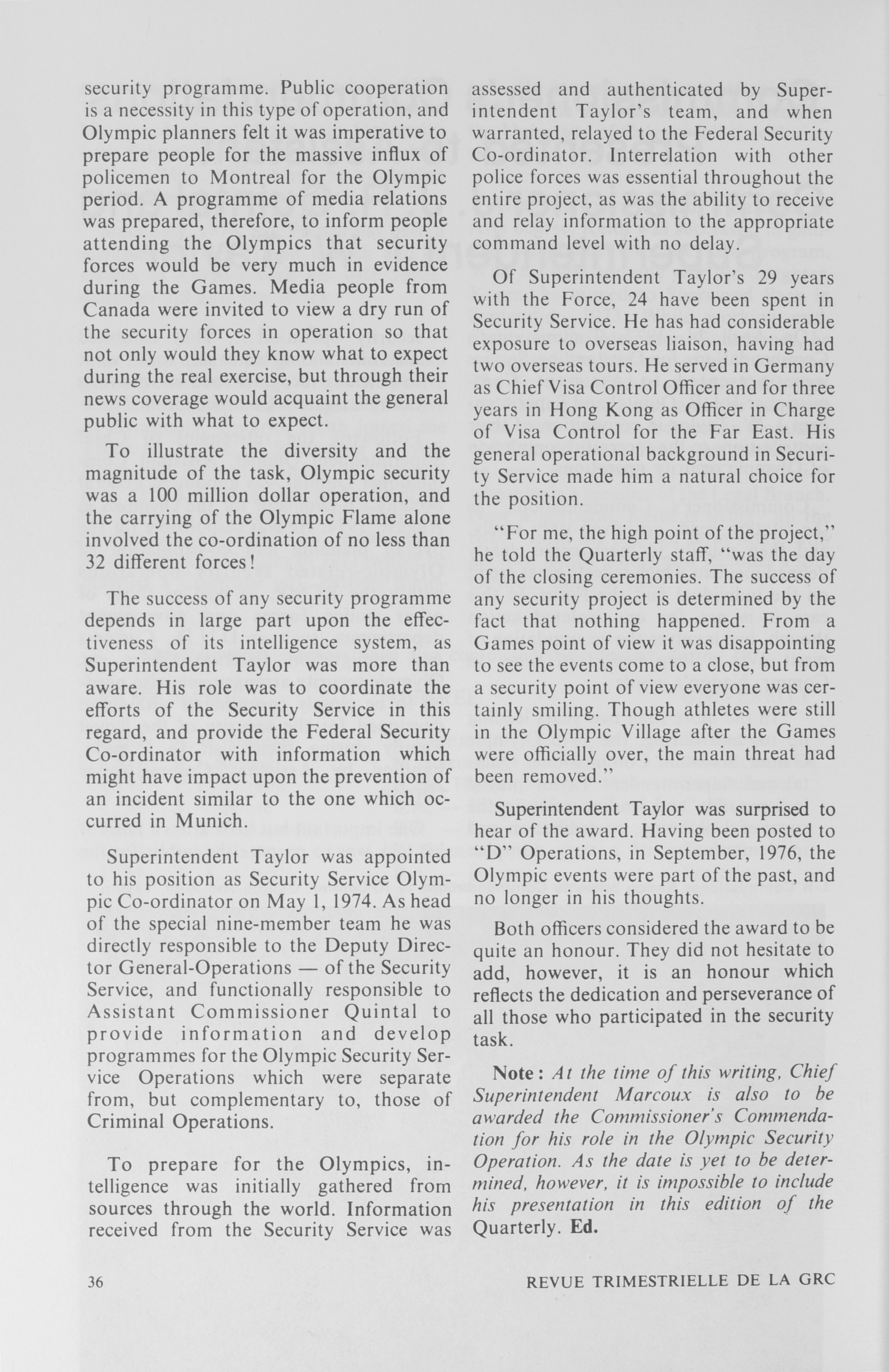 Part of the RCMP Quarterly Collection shared by the University of Regina, which includes "Royal Canadian Mounted Police quarterly", "RCMP quarterly = Revue trimestrielle de la GRC", and "The quarterly". - URL pérenne