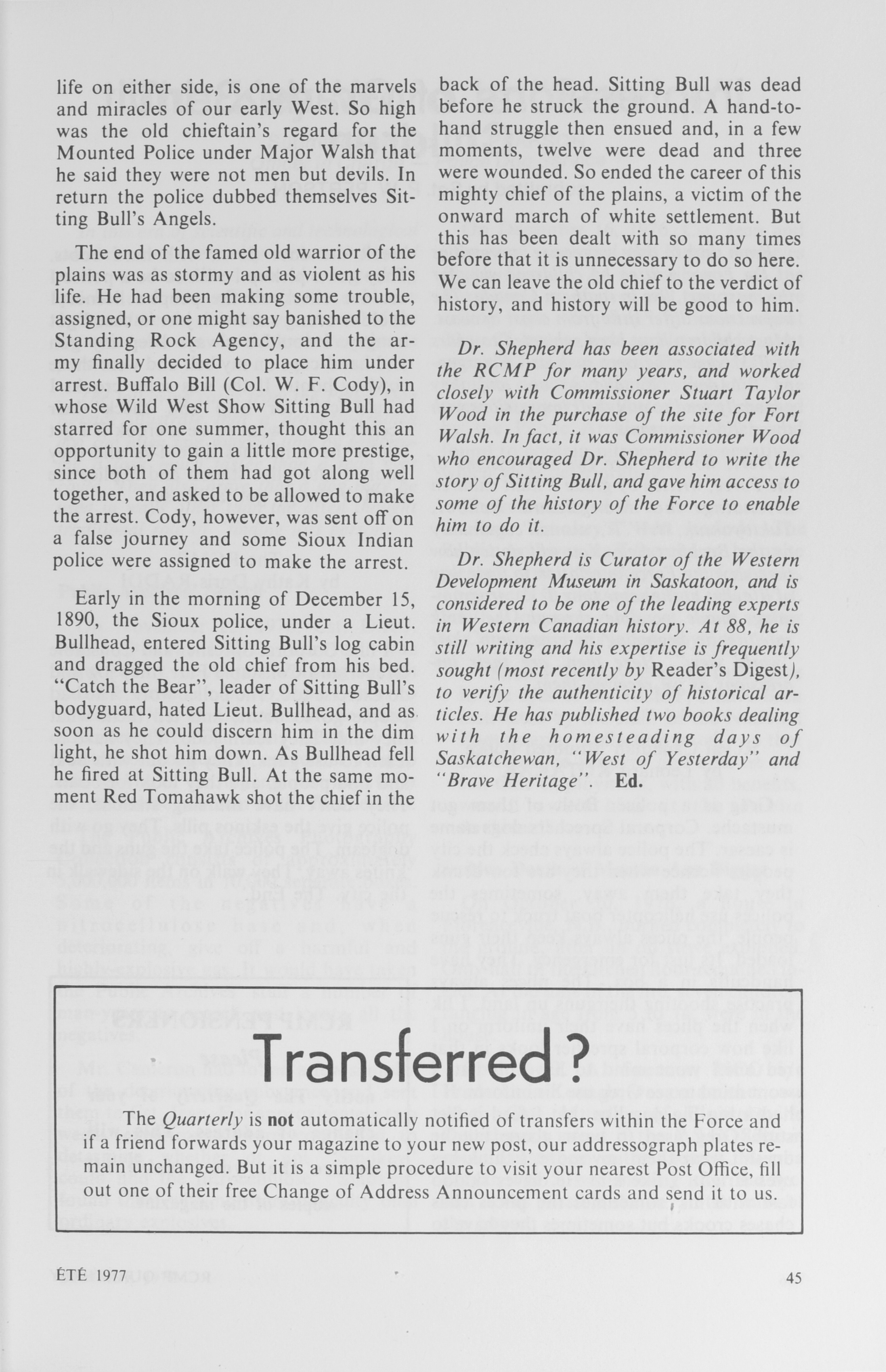 - RCMP quarterly = Revue trimestrielle de la GRC: Vol. 42, No. 3 (Summer, 1977)