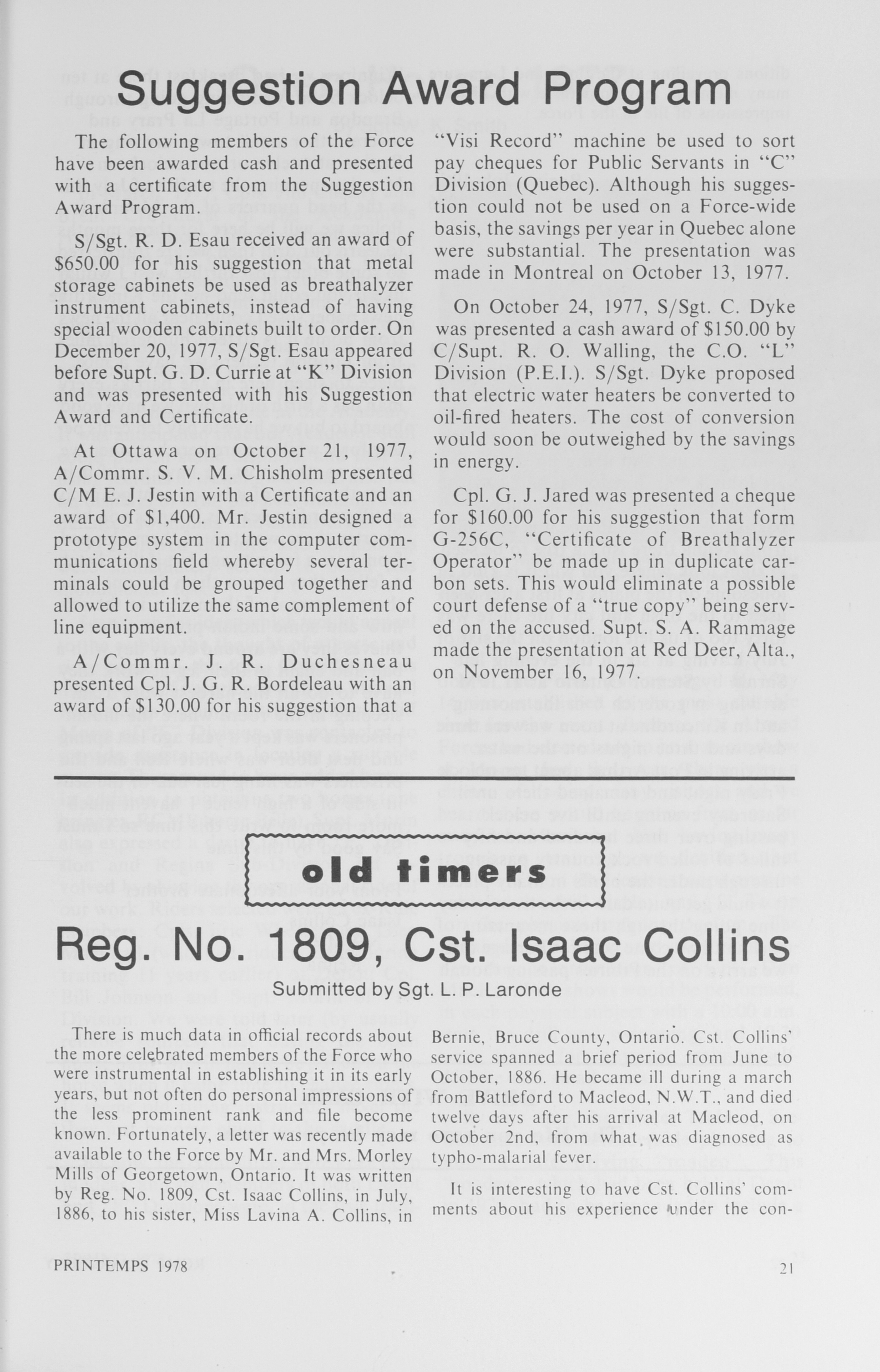 - RCMP quarterly = Revue trimestrielle de la GRC: Vol. 43, No. 2 (Spring, 1978)