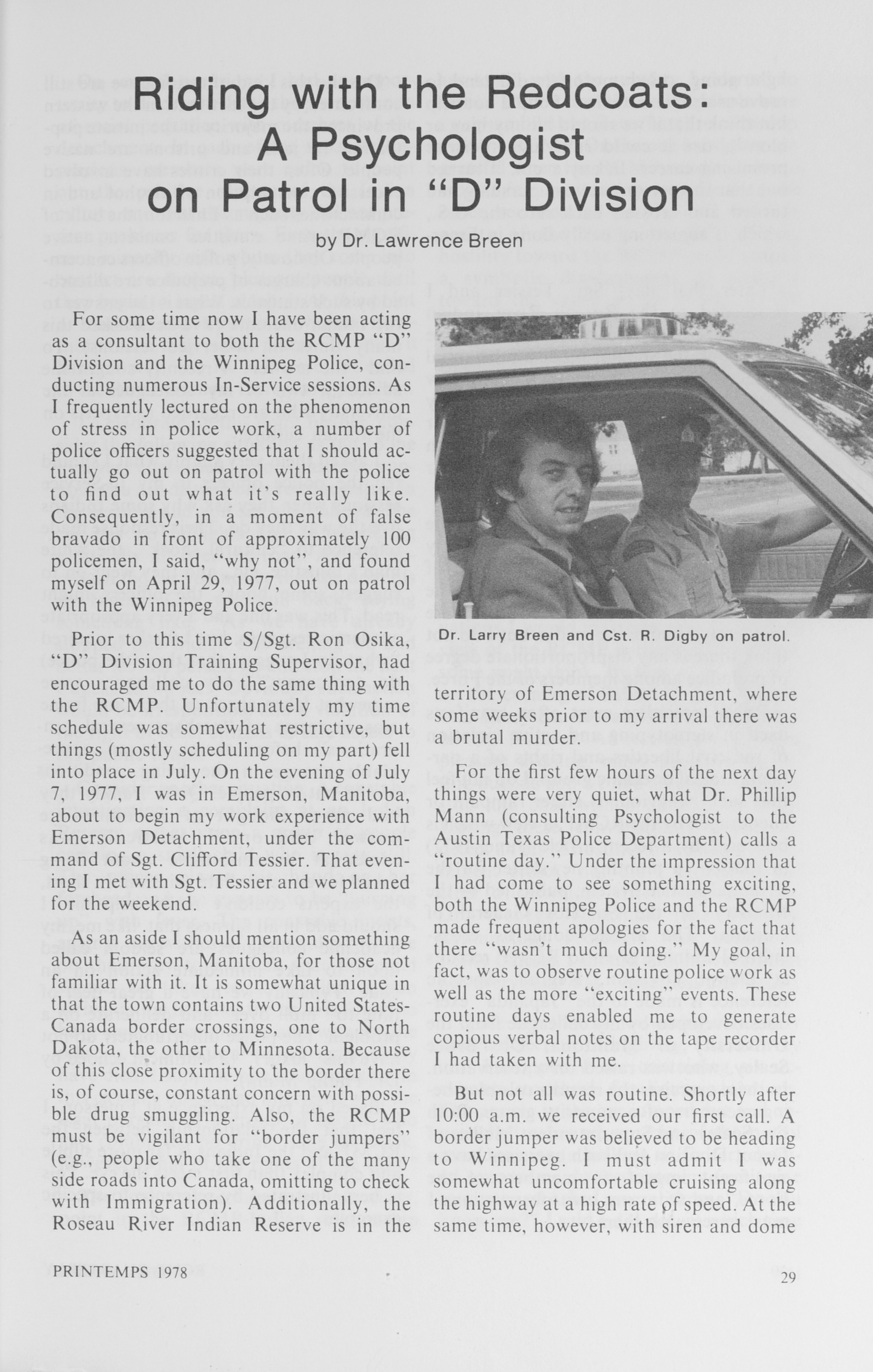 - RCMP quarterly = Revue trimestrielle de la GRC: Vol. 43, No. 2 (Spring, 1978)