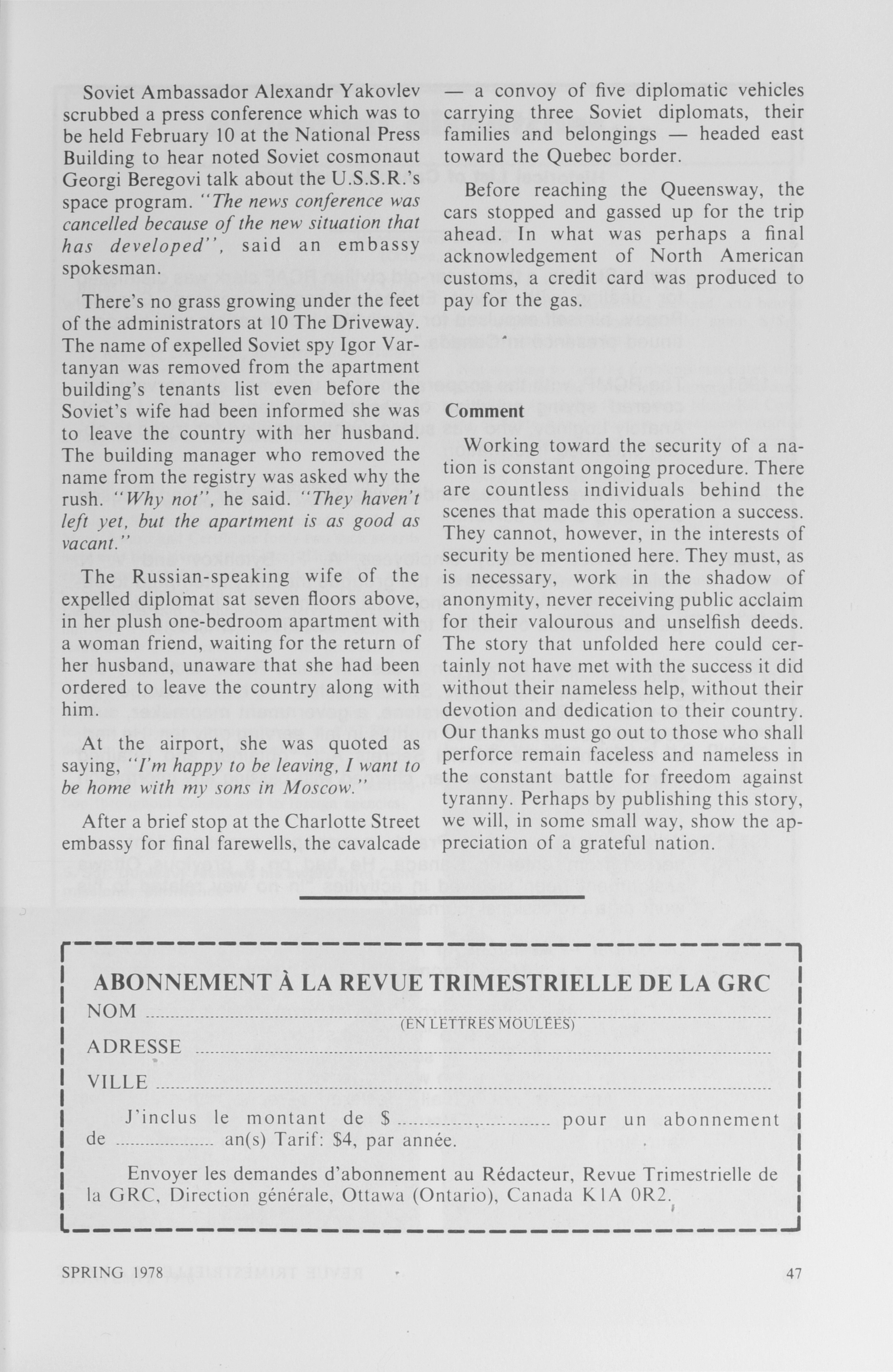 - RCMP quarterly = Revue trimestrielle de la GRC: Vol. 43, No. 2 (Spring, 1978)