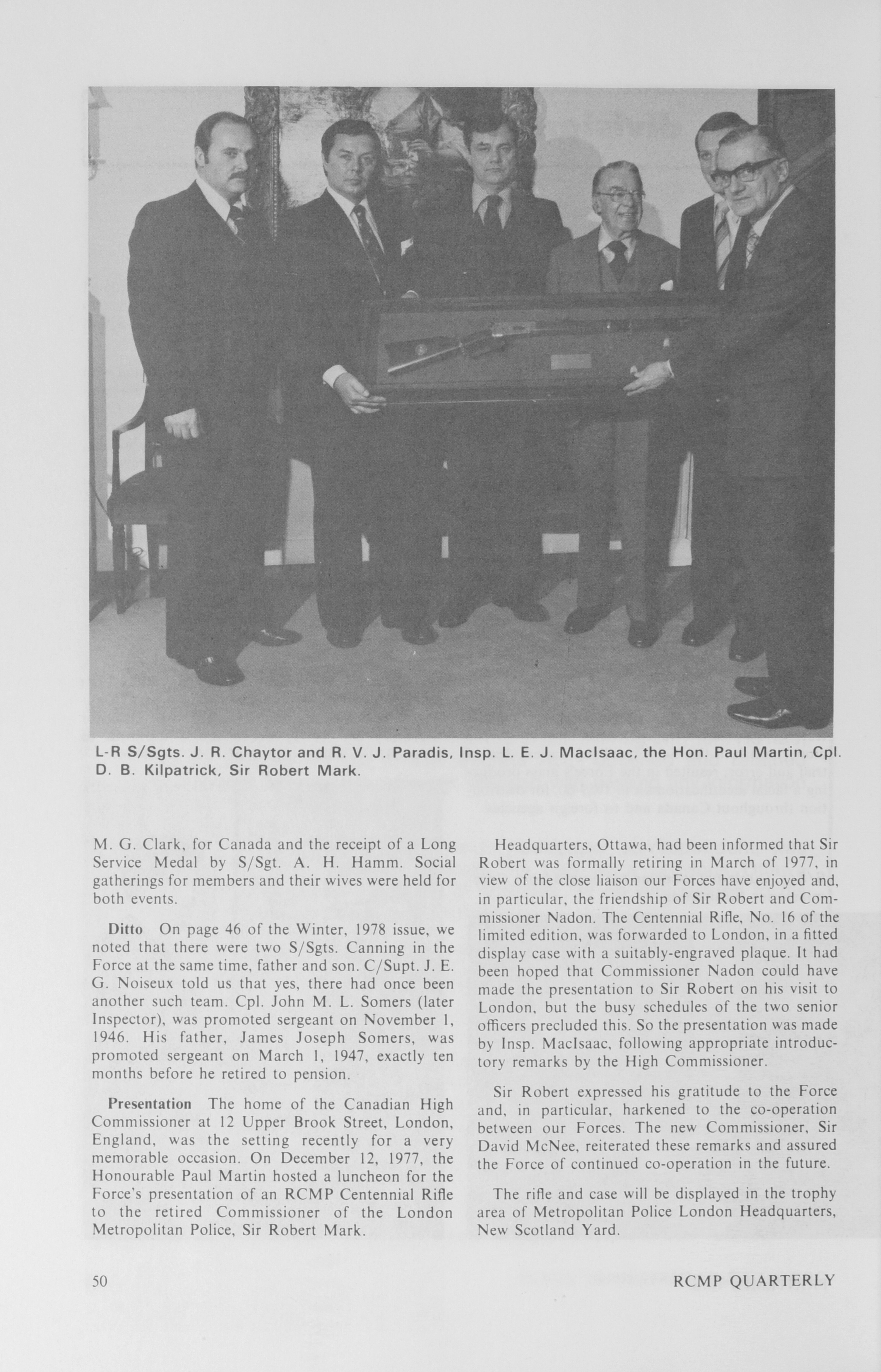 - RCMP quarterly = Revue trimestrielle de la GRC: Vol. 43, No. 2 (Spring, 1978)