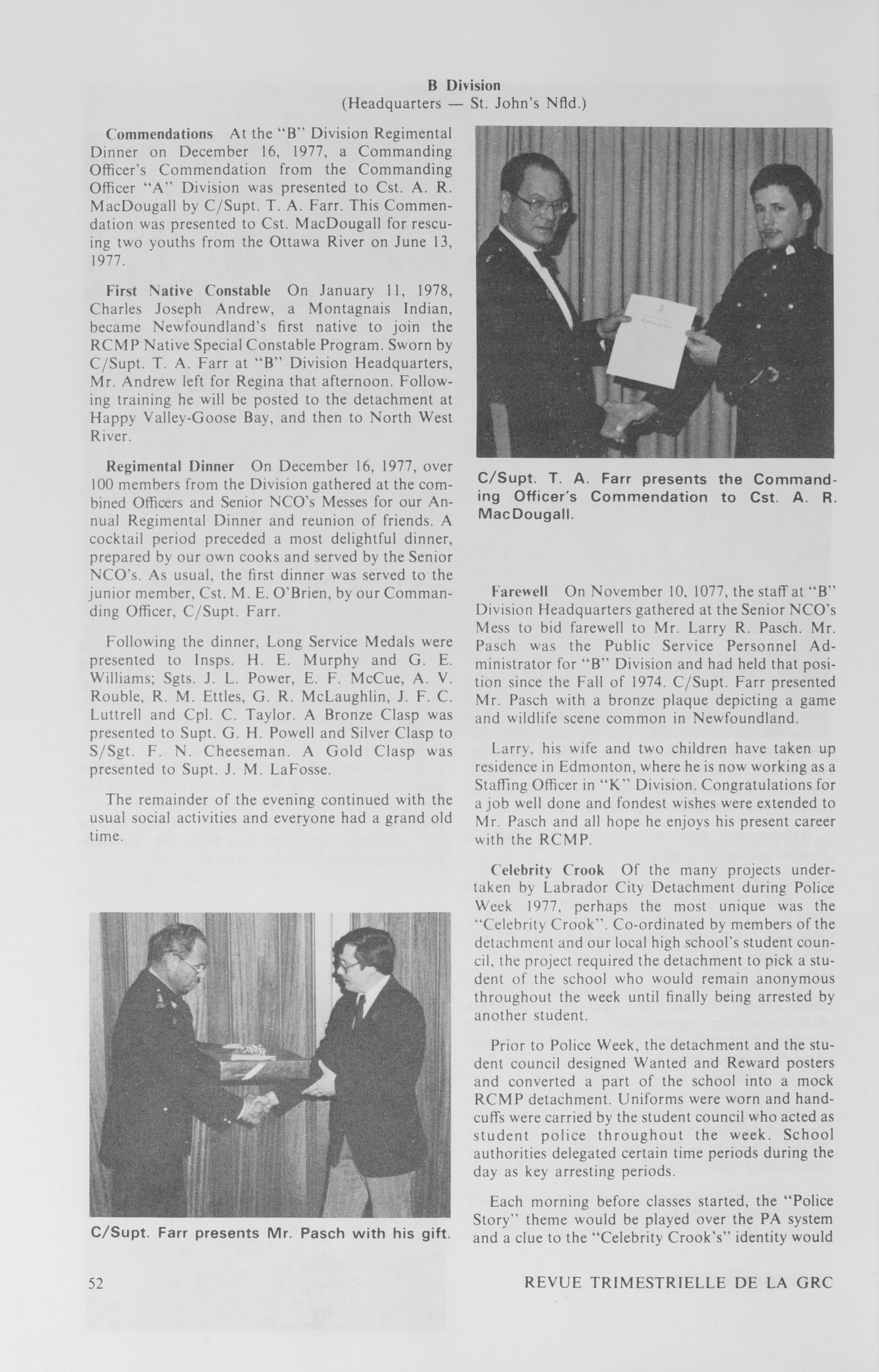 - RCMP quarterly = Revue trimestrielle de la GRC: Vol. 43, No. 2 (Spring, 1978)