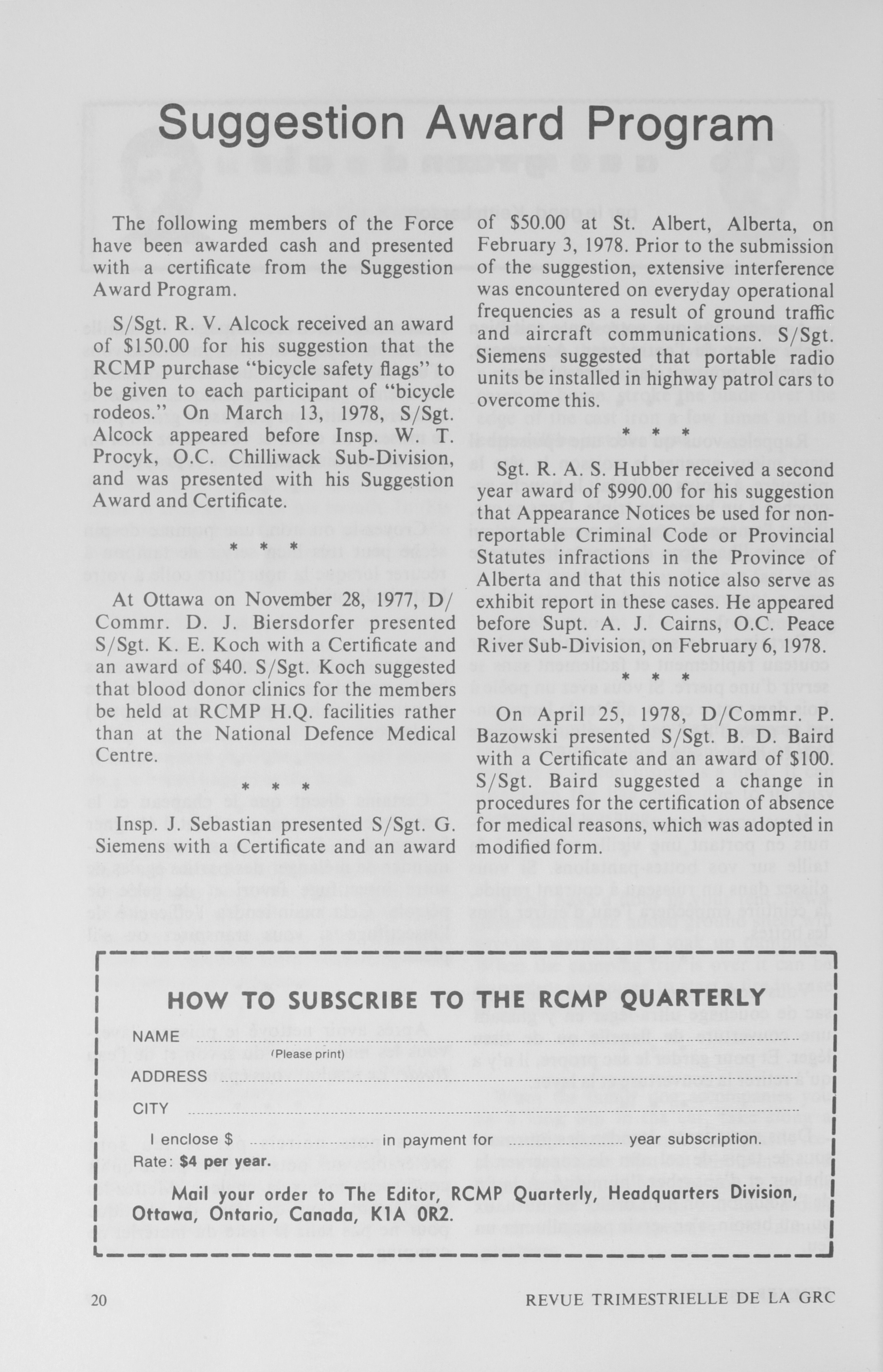 - RCMP quarterly = Revue trimestrielle de la GRC: Vol. 43, No. 3 (Summer, 1978)