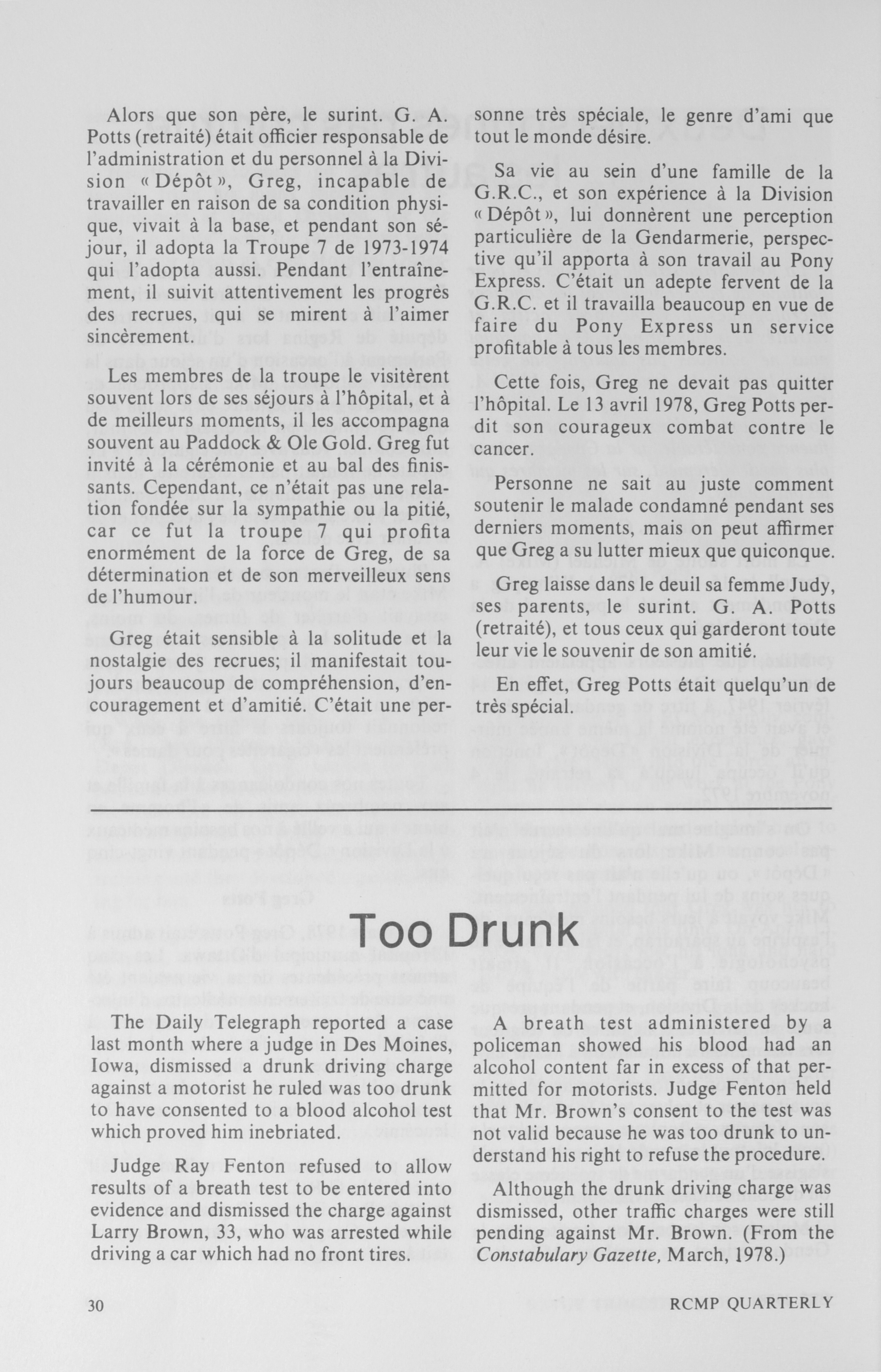 - RCMP quarterly = Revue trimestrielle de la GRC: Vol. 43, No. 3 (Summer, 1978)