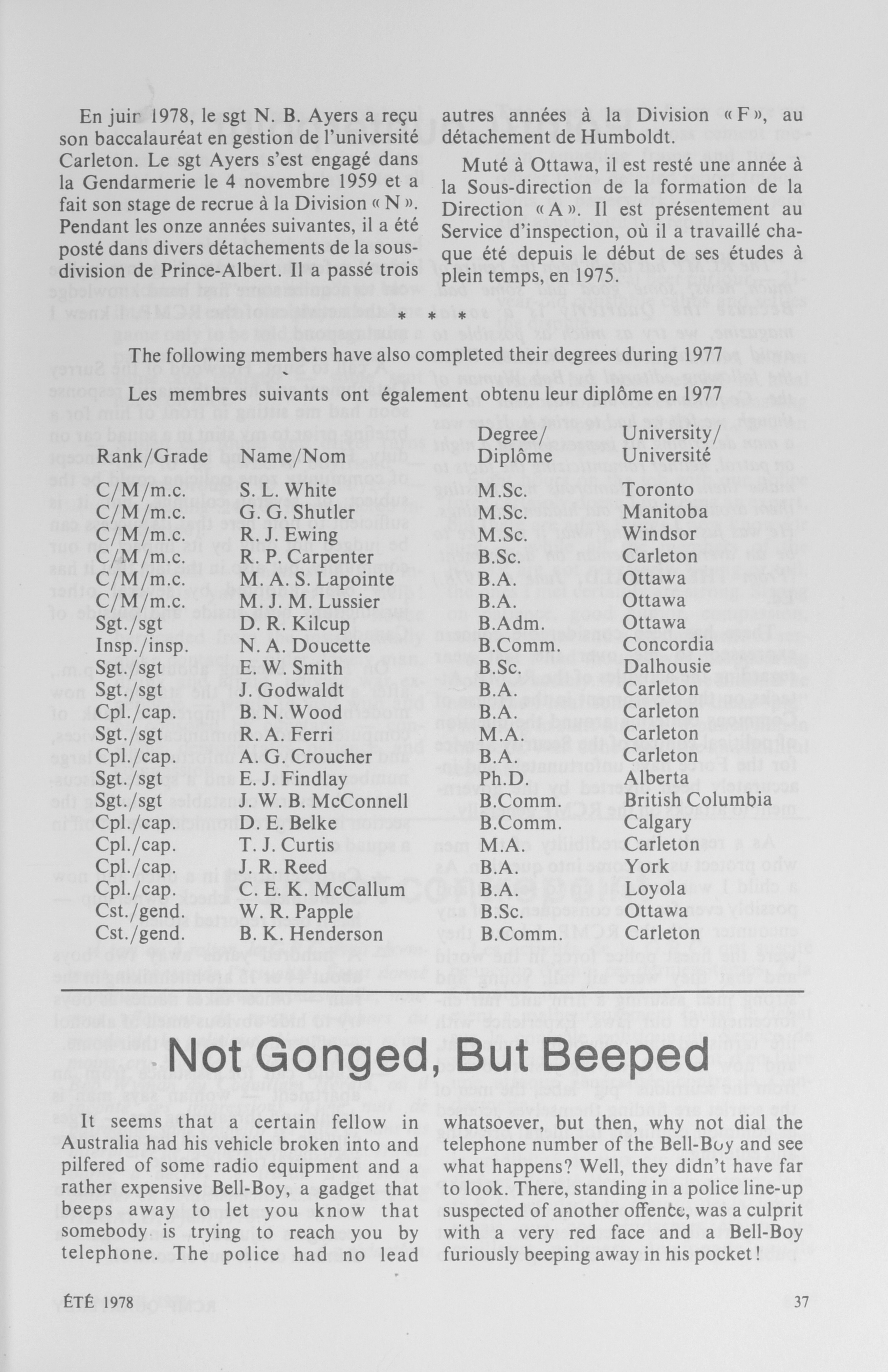 - RCMP quarterly = Revue trimestrielle de la GRC: Vol. 43, No. 3 (Summer, 1978)