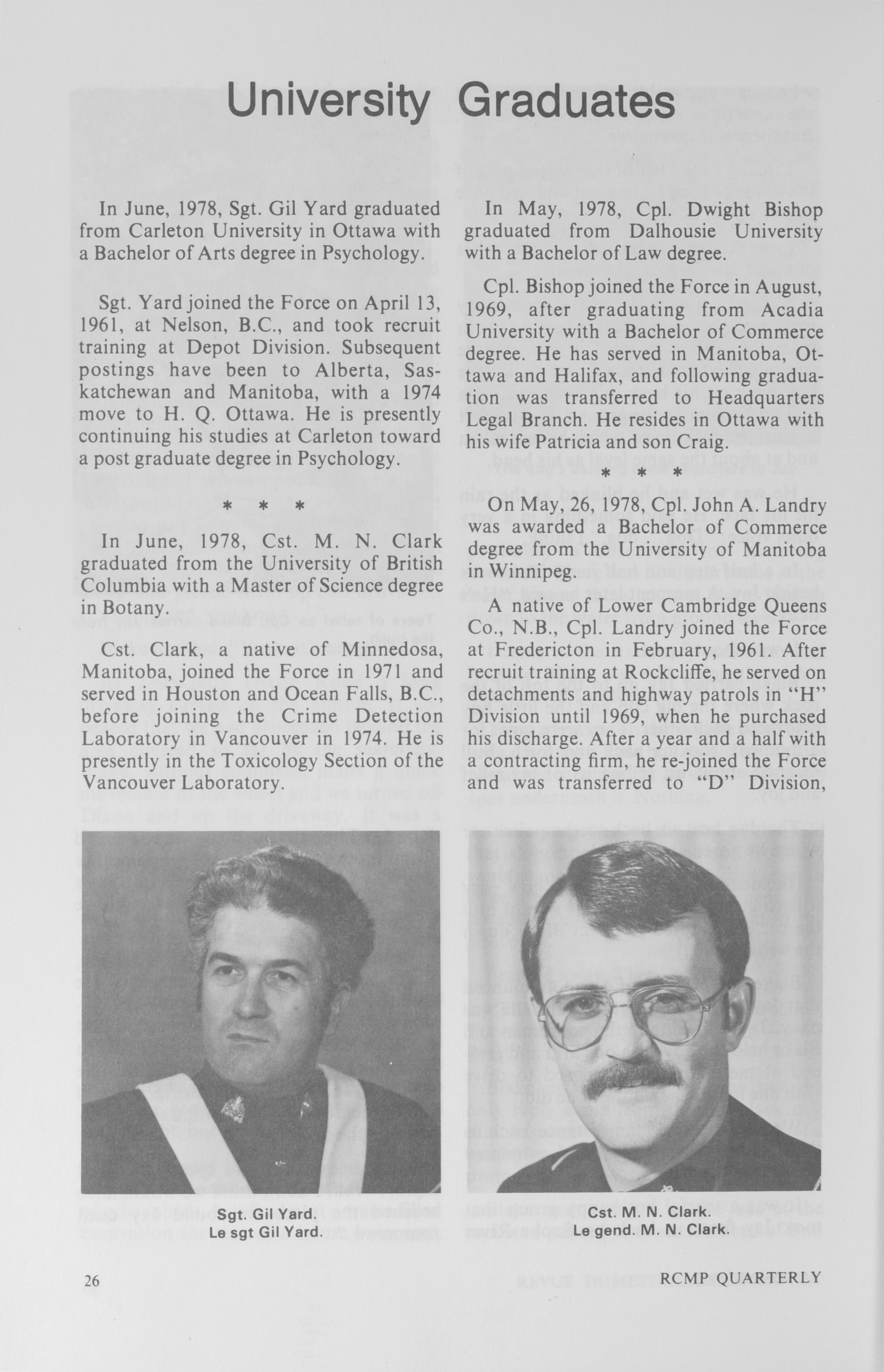 - RCMP quarterly = Revue trimestrielle de la GRC: Vol. 43, No. 4 (Fall, 1978)