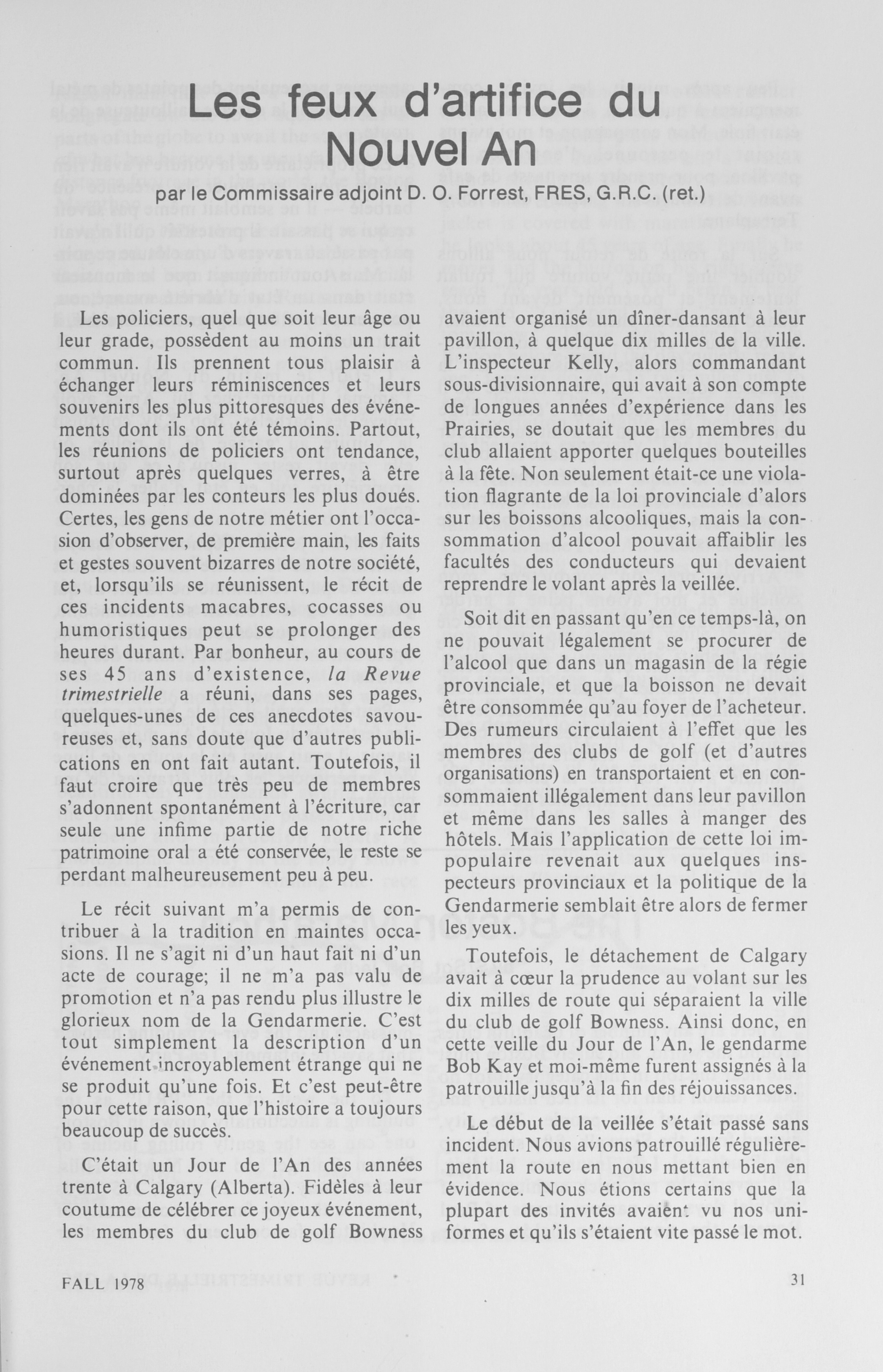 - RCMP quarterly = Revue trimestrielle de la GRC: Vol. 43, No. 4 (Fall, 1978)