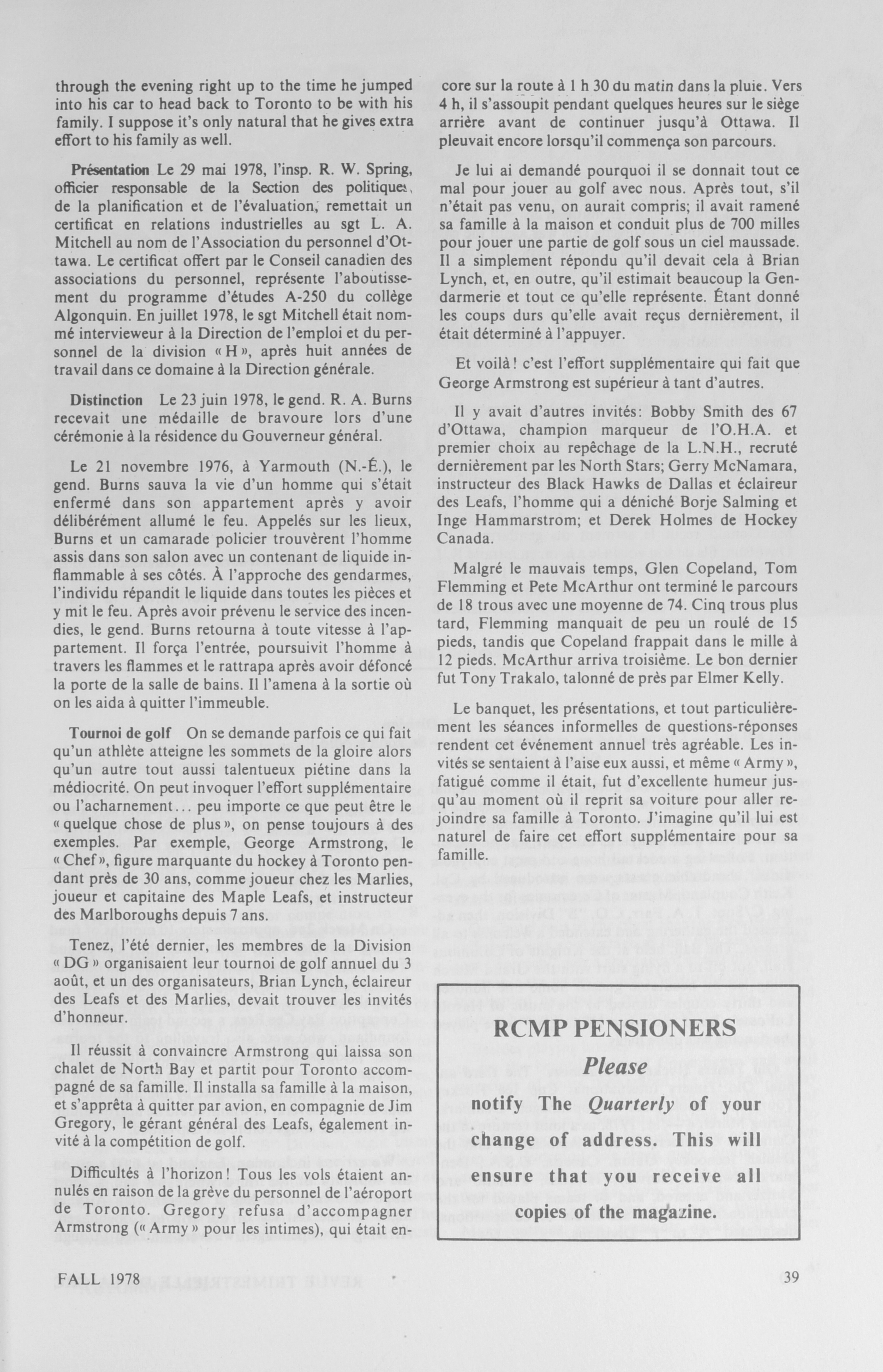 RCMP quarterly = : RCMP quarterly = Revue trimestrielle de la GRC: Vol. 43, No. 4 (Fall, 1978)