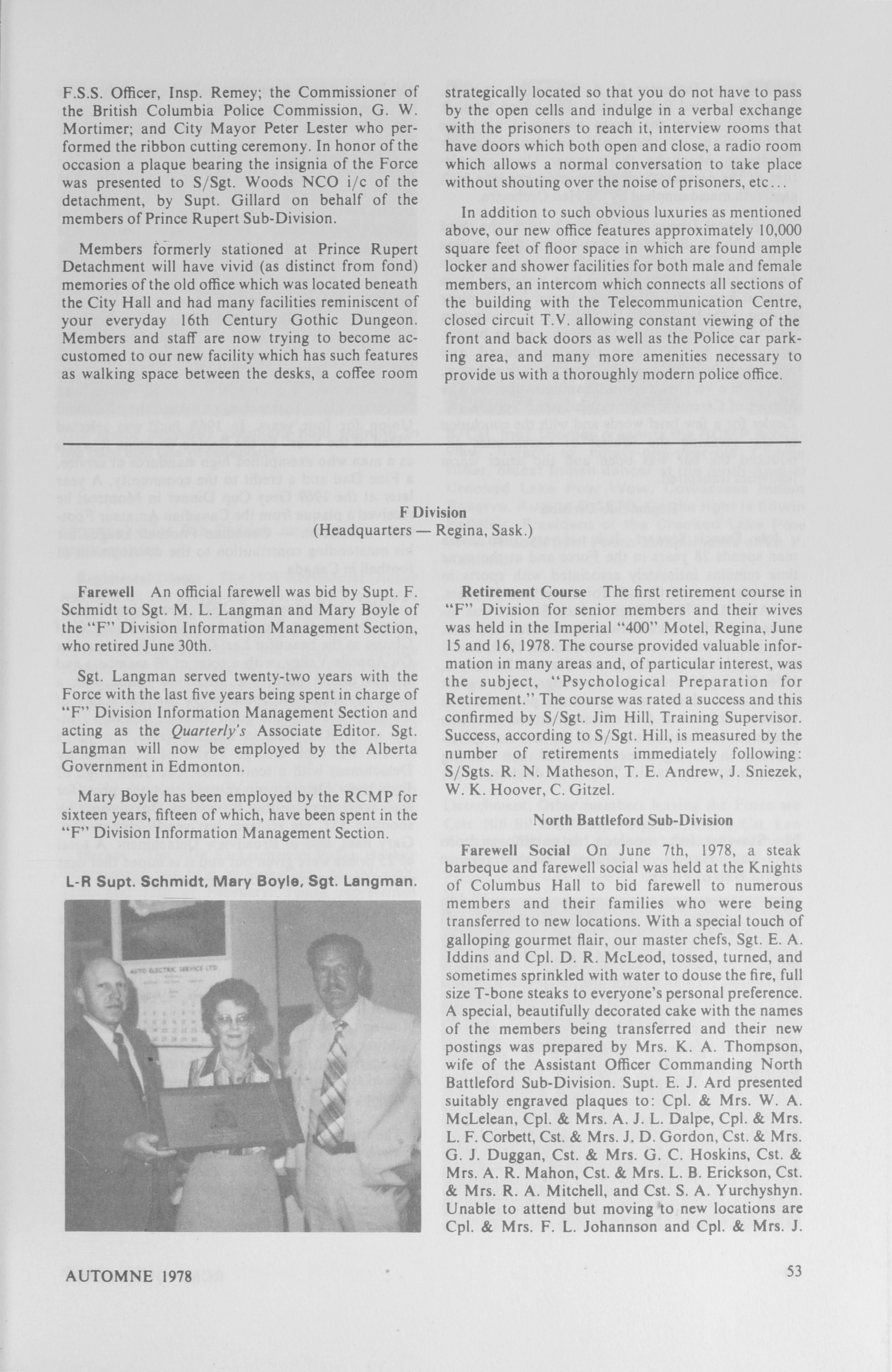 RCMP quarterly = : RCMP quarterly = Revue trimestrielle de la GRC: Vol. 43, No. 4 (Fall, 1978)